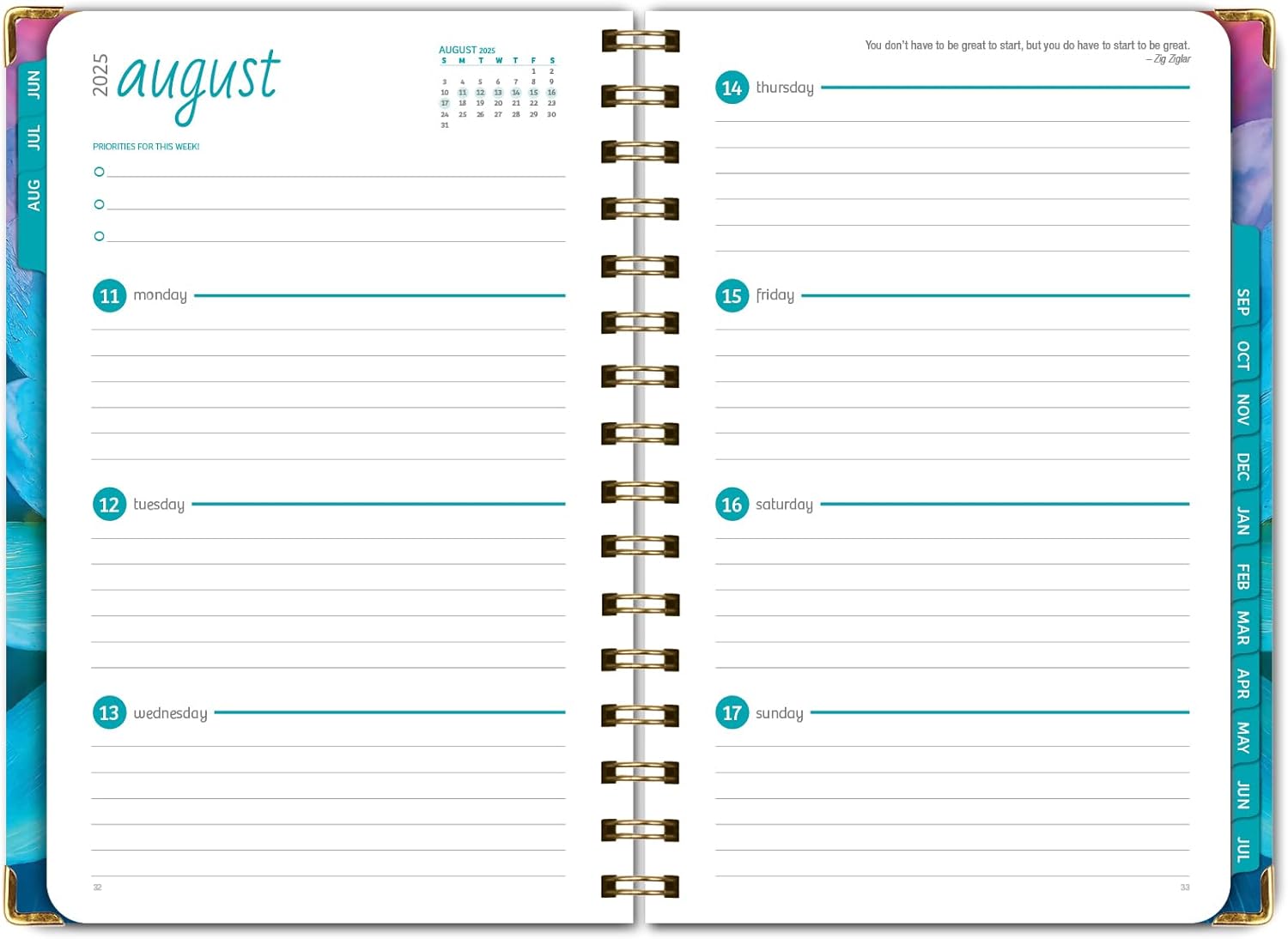 HARDCOVER Academic Year 2025-2026 Planner: (June 2025 Through July 2026) 5.5"x8" Daily Weekly Monthly Planner Yearly Agenda. Bookmark, Pocket Folder and Sticky Note Set (Rainbow Petals)