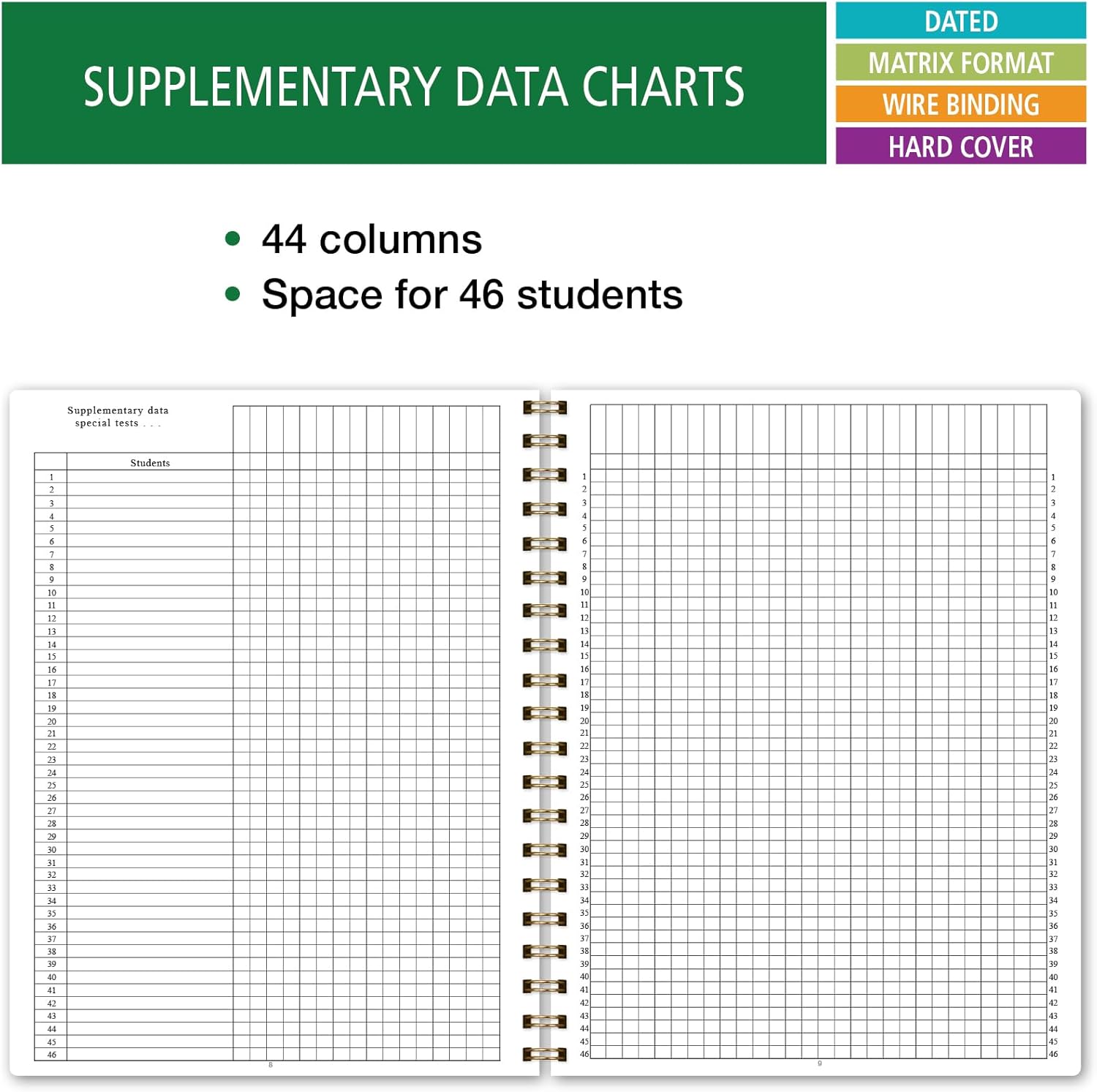 - Two-sided pocket at the back of the book for papers