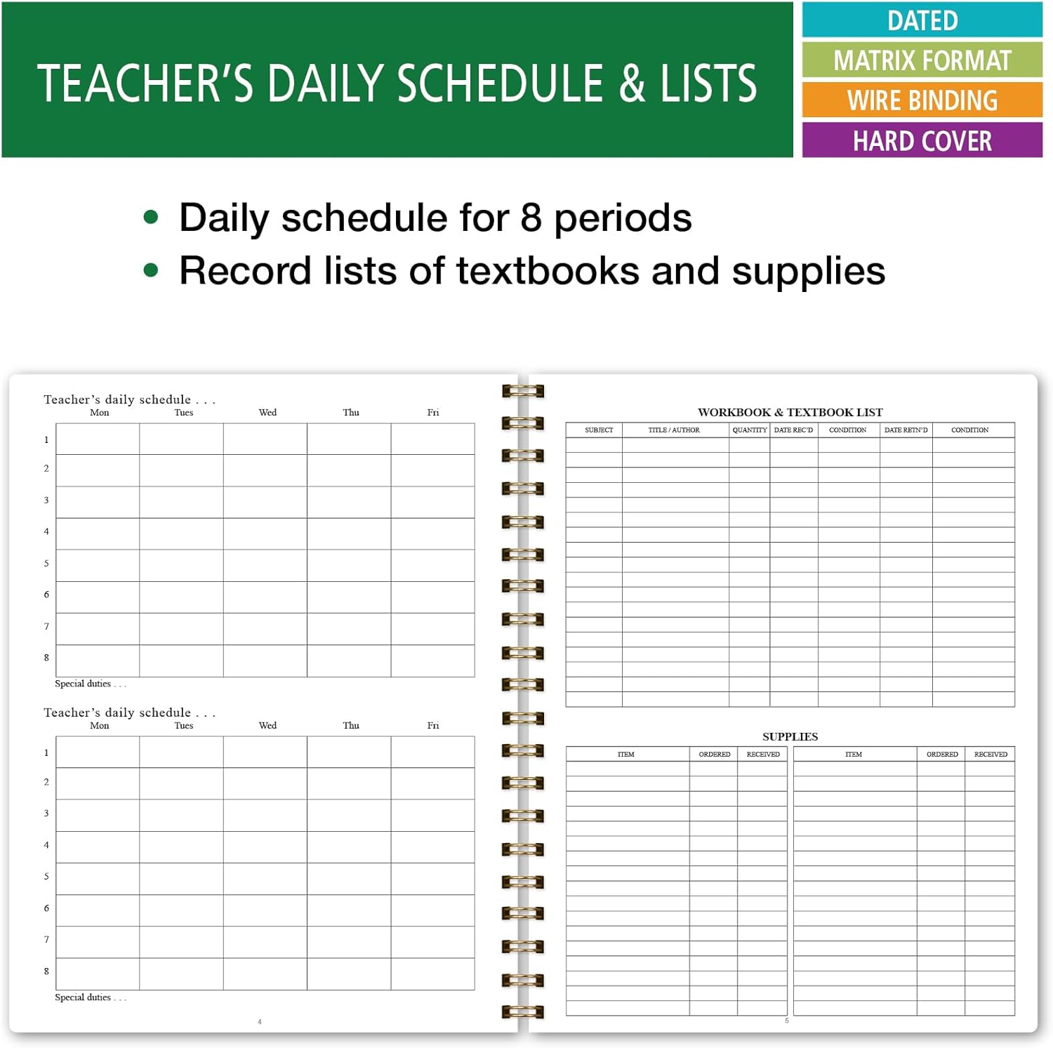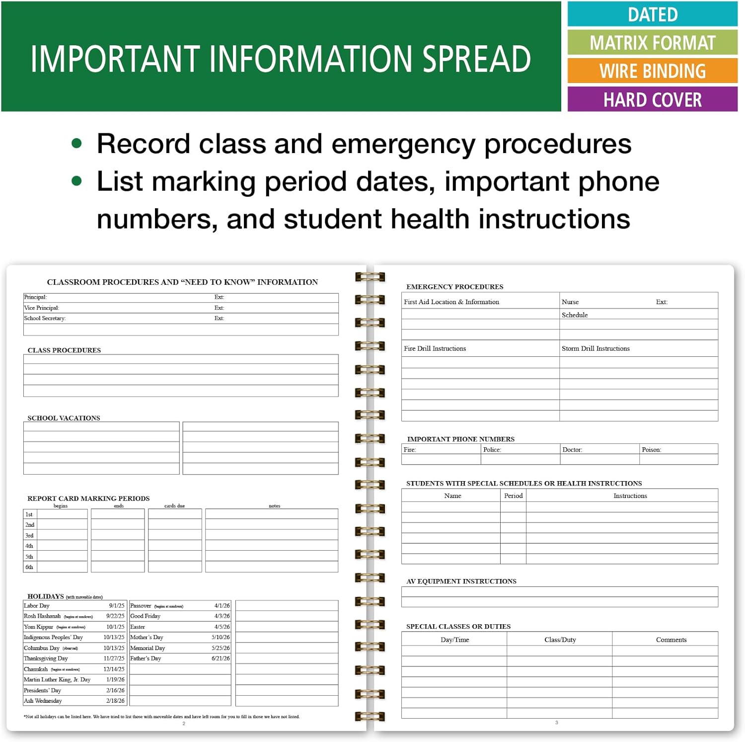 - 8.5" x 11" Dated Teacher Plan Book Dated August 2025 - June 2026
