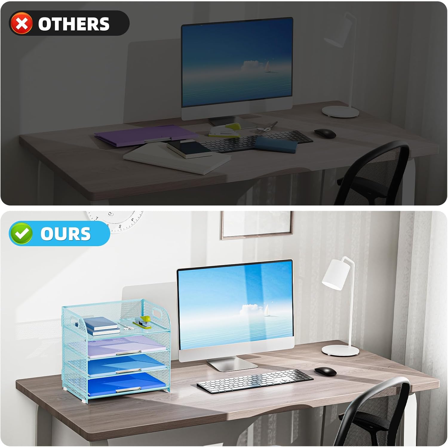 - 【High Qualty】 The mesh desk file organizer is made of lightweight durable metal mesh and reinforced with a solid steel frame that makes it have long-lasting strength and reliable performance