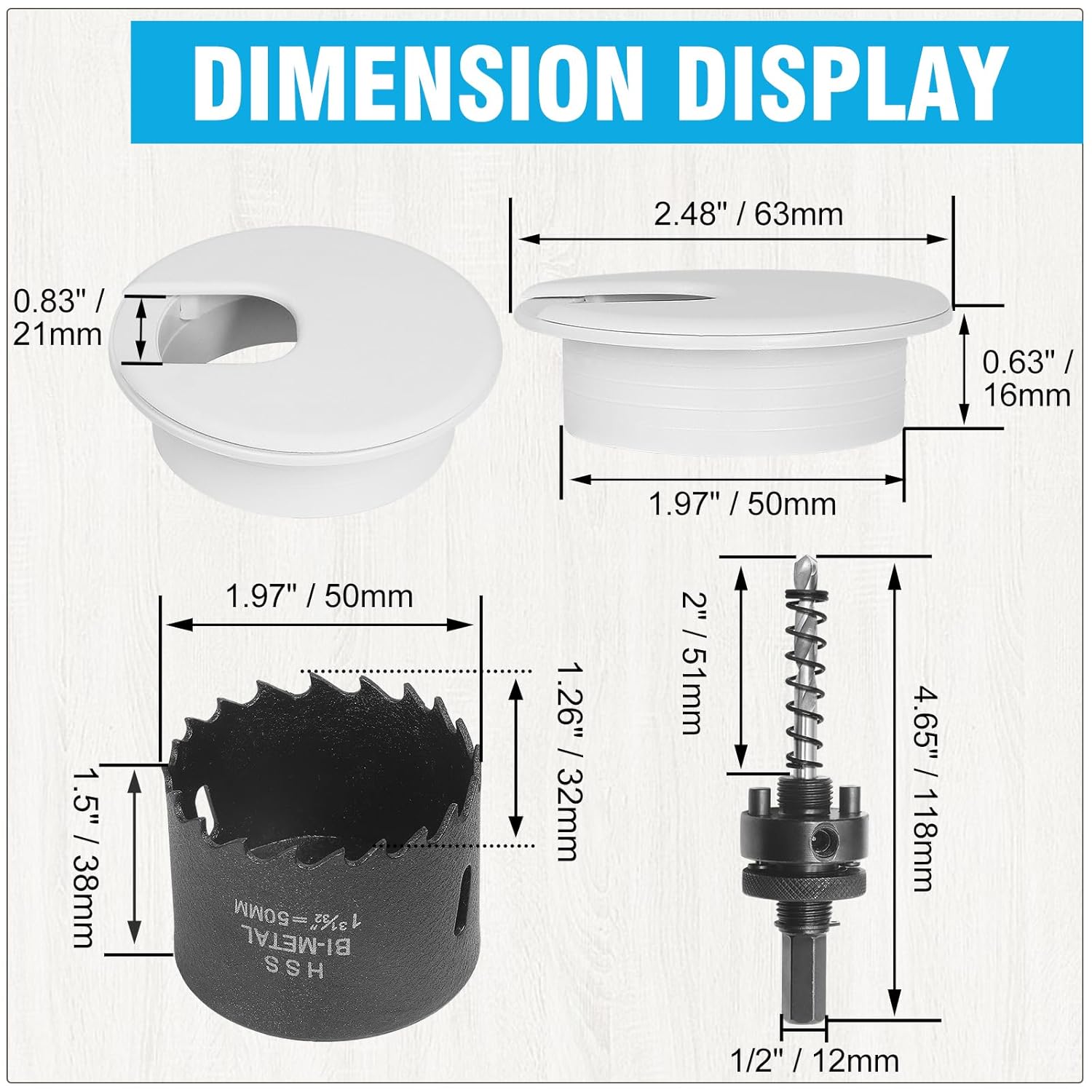 - DELIGHTS PACKAGE -- Your package includes 12 x 2" desk grommets, 1 x 2" hole saw. Useful Tips: 1.Start by vertically and slowly cutting a slot, 2.Maintain even pressure while cutting, and keep your pace slow to avoid damaging the surface, 3.Periodically clean the desk grommet area to prevent accumulation of debris.