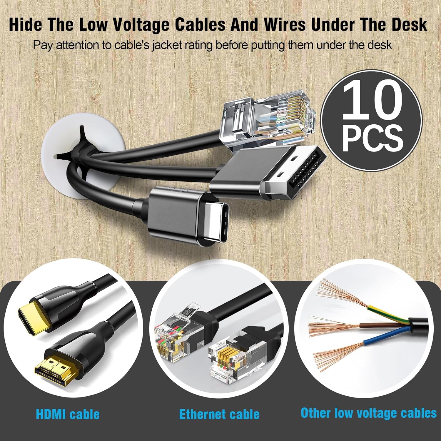- DELIGHTS PACKAGE -- Your package includes 10 x 25mm desk grommets. Useful Tips: ① Make sure the hole's edges are smooth and free of splinters that could damage your cables or the grommet, ② Place the grommet into the hole. It should fit snugly, ③ Finally, route your cables through the desk grommet.