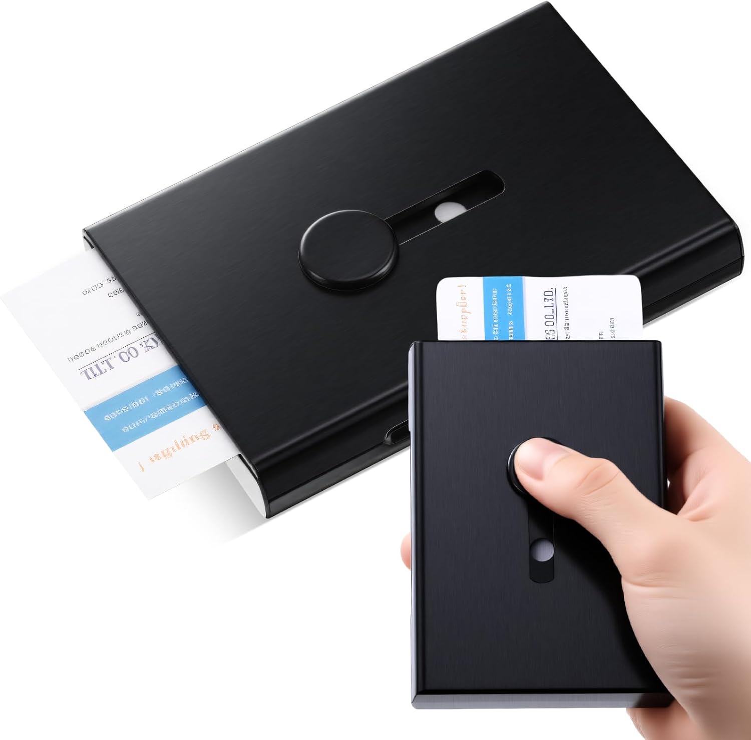 Zonon Large Thumb Drive Business Card Holder Fit 28 Name Credit Aluminum Alloy Slide out Name Card Case Portable Business Holder Wallet Pocket for Men Women(Black)