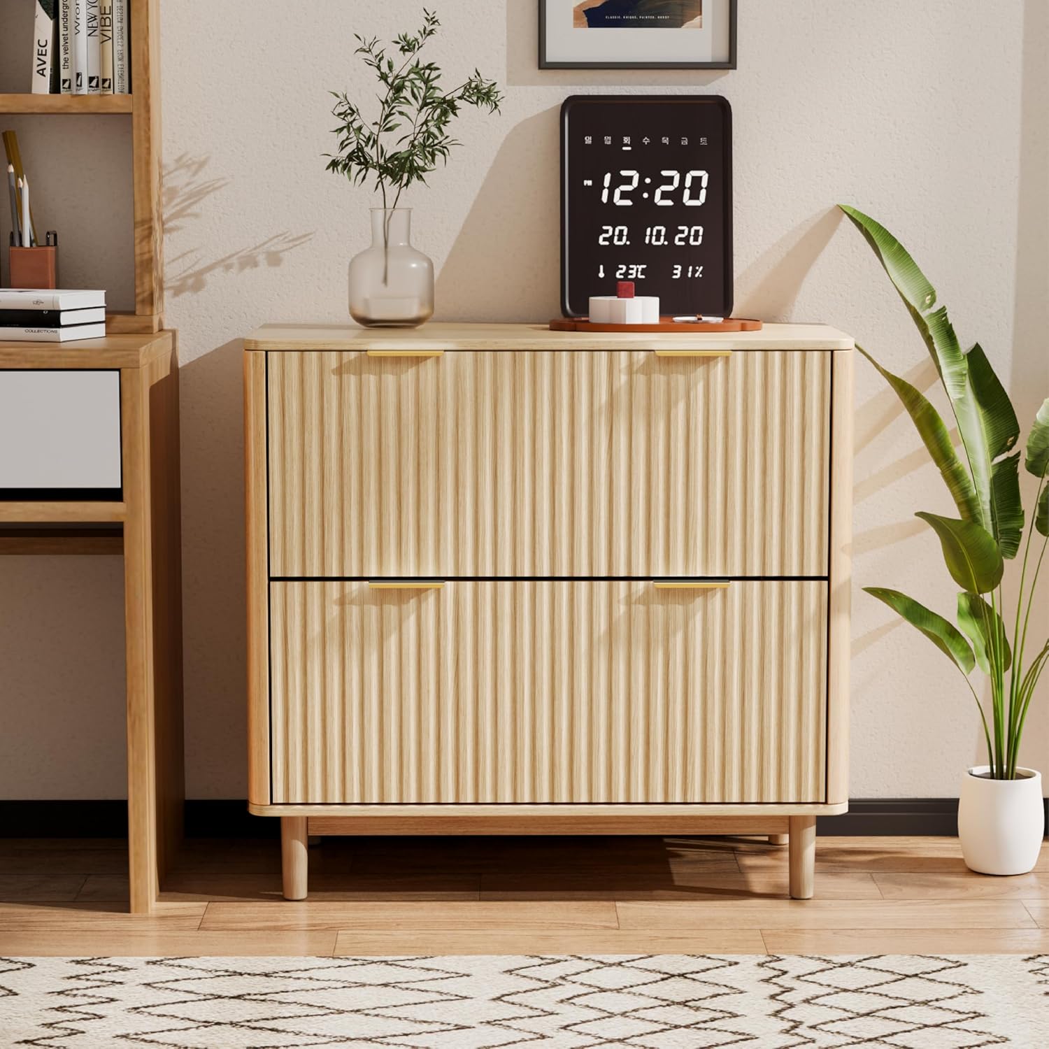 VINGLI 2 Drawer File Cabinet, Home Office Filing Organizer, for Letter Legal A4 Size File Folder Storage, Modern Style Fluted Design, Wood Lateral Filing Cabinet, Printer Stand, Archivador (Oak)
