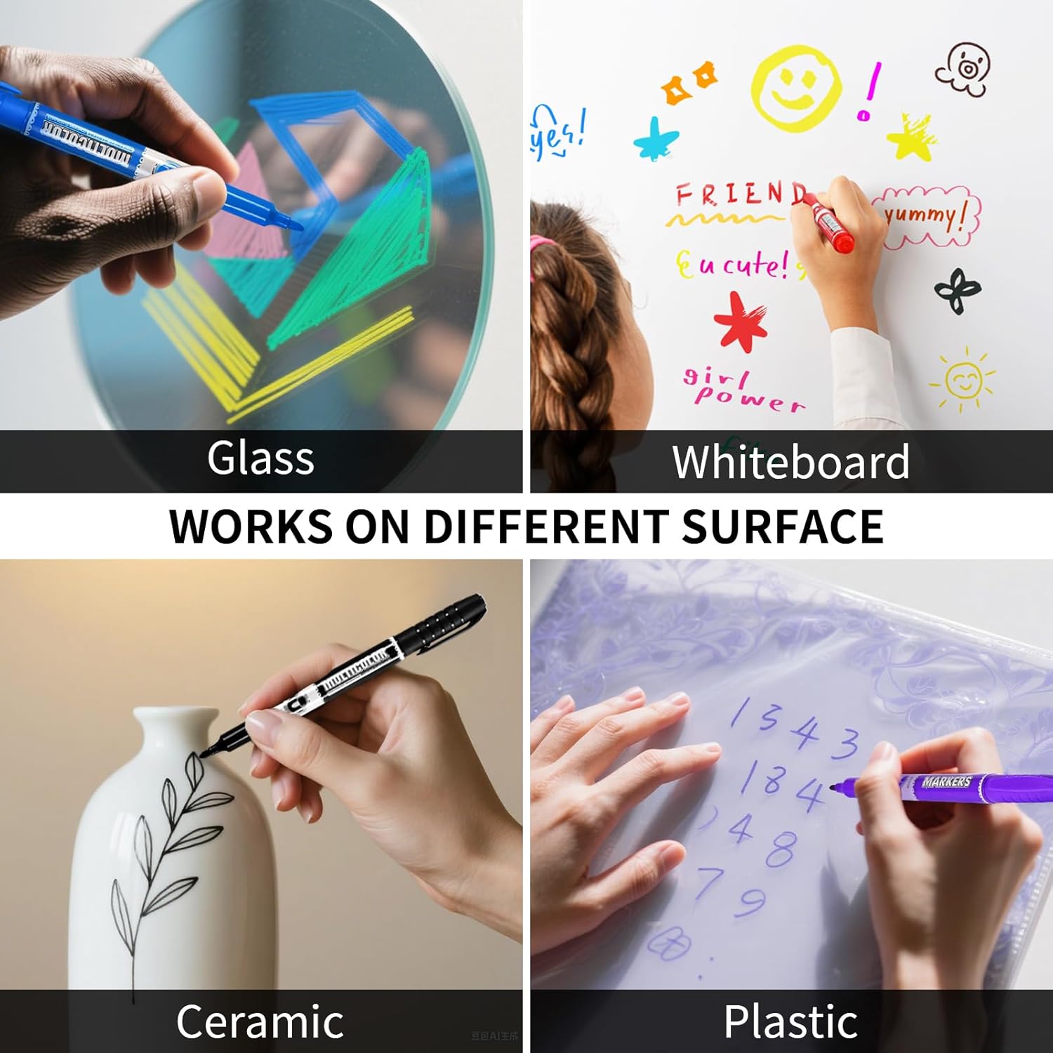 - VERSATILE USE: Perfect for writing and drawing on whiteboards, glass surfaces, and other non-porous surfaces with smooth erasability