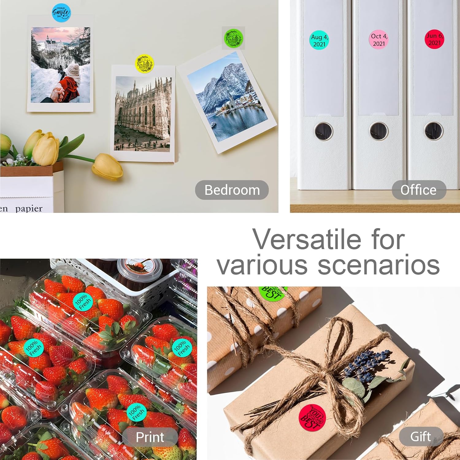 - Writable and Printable Labels: 1 inch color coding label dots allow to write messages with a pen, pencil, colored pen, whiteboard pen, etc. You can also use these colored round stickers in a thermal printer
