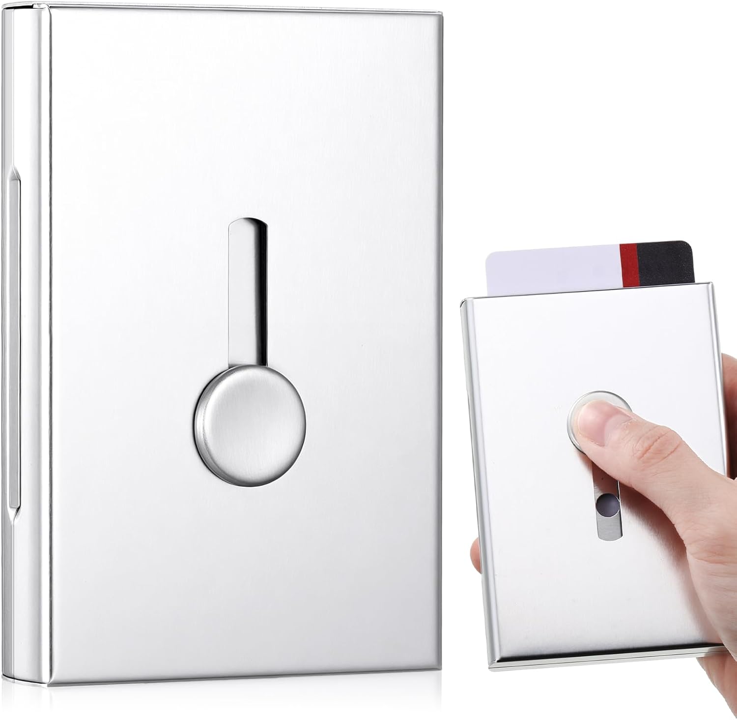 - Sliding Design: business card holder metal only needs to slide the business card with the thumb; When the business card part slides out, the business card can be pulled out by hand; Easy to operate, Only one business card is allowed to slide out at a time