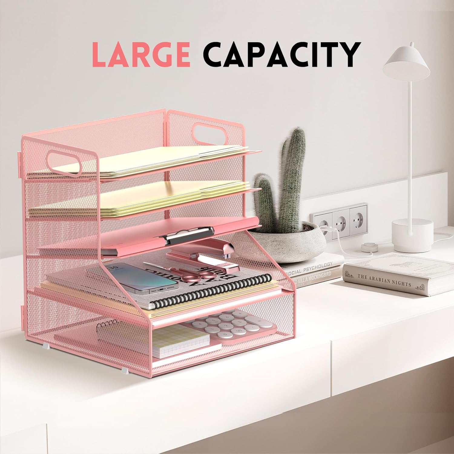 - All-in-One Desk Organizer: Featuring 3-tier sliding inclined paper trays and 2-tier horizontal storage trays, this desk organizer maximizes desktop space while keeping office supplies perfectly categorized. The smart storage system neatly accommodates folders, stationery, and other office supplies, maintaining a clutter-free workspace for enhanced productivity in any environment