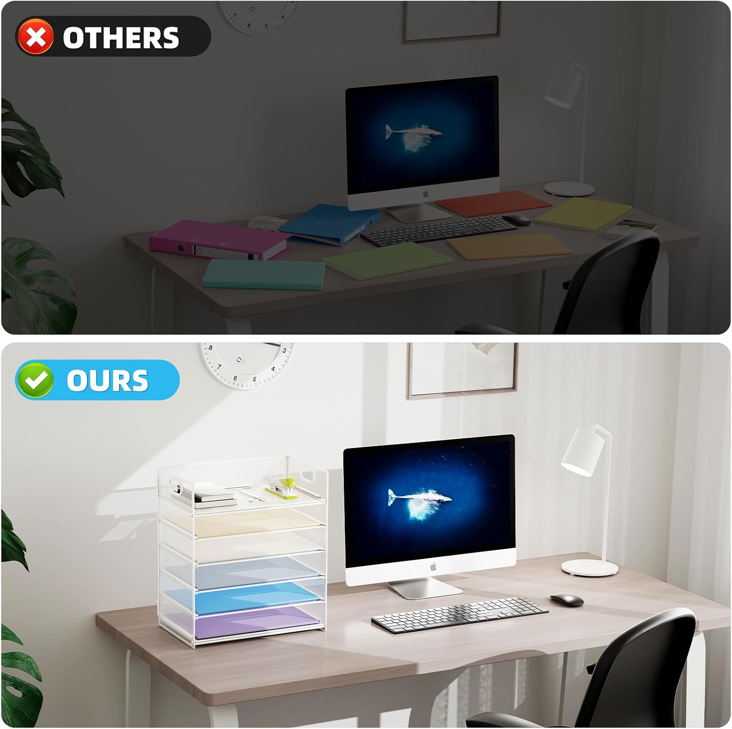 - 【MULTI-PURPOSE ORGANIZER】2 Pack 6-tier layered design and large capacity make the paper organizer become an ideal choice for managing all kinds of letter-size letters, paper, books, bills, etc. Let you quickly identify the contents of each compartment super easy!