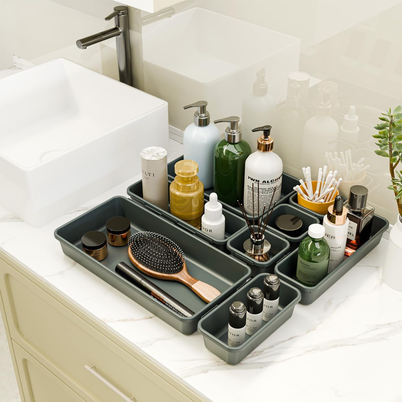 - Widely Used--These drawer dividers trays are perfect for any place in your home. Organizer bins are perfect for dresser, bathroom drawer, kitchen drawer, office desk etc. Easy to find your things when you need.