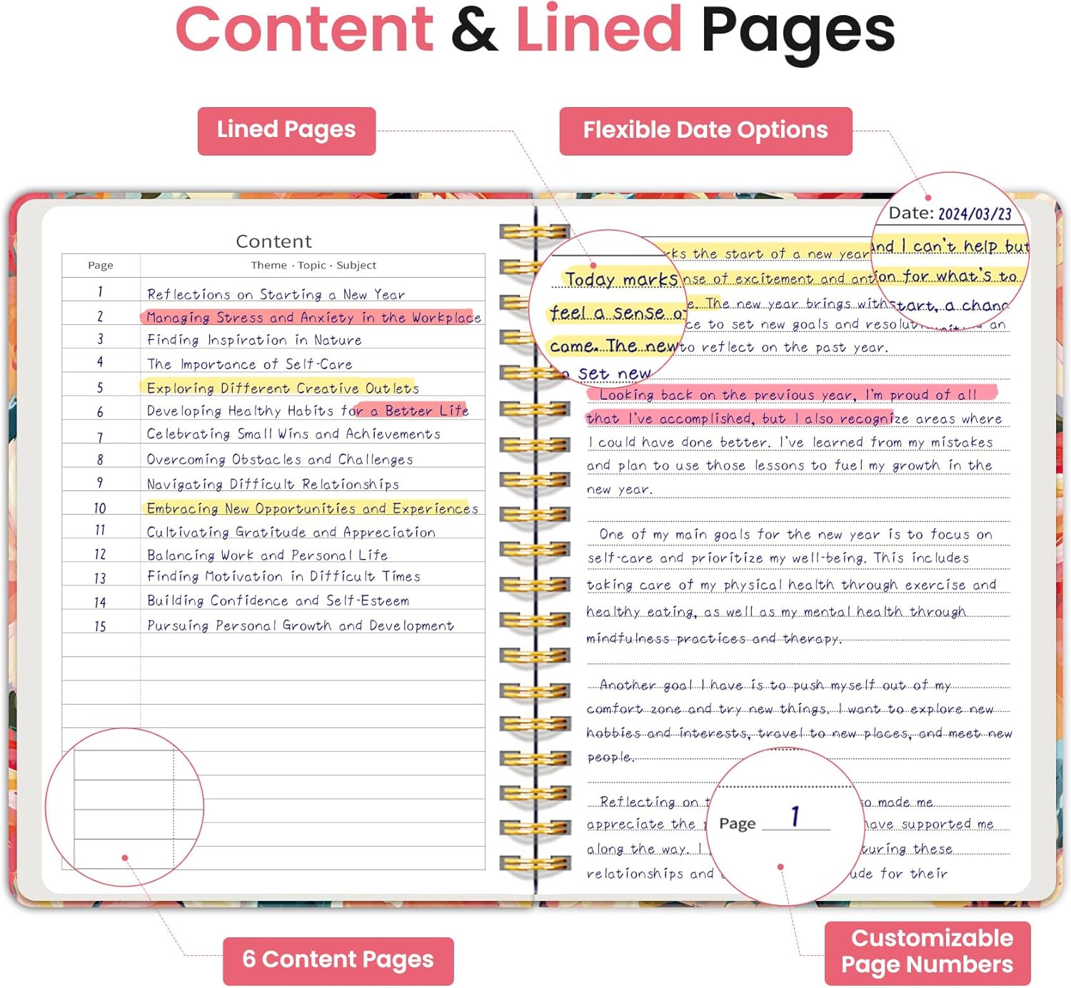 - Structured College-Ruled Pages: Featuring 7mm college-ruled lines, this journal notebook helps keep your writing organized and legible. The evenly spaced lines are perfect for structured notes, work lists, or detailed writing, making it an excellent choice for school students, professionals, and writers alike. It also includes 6 content pages, perfect for creating an index for easy reference.