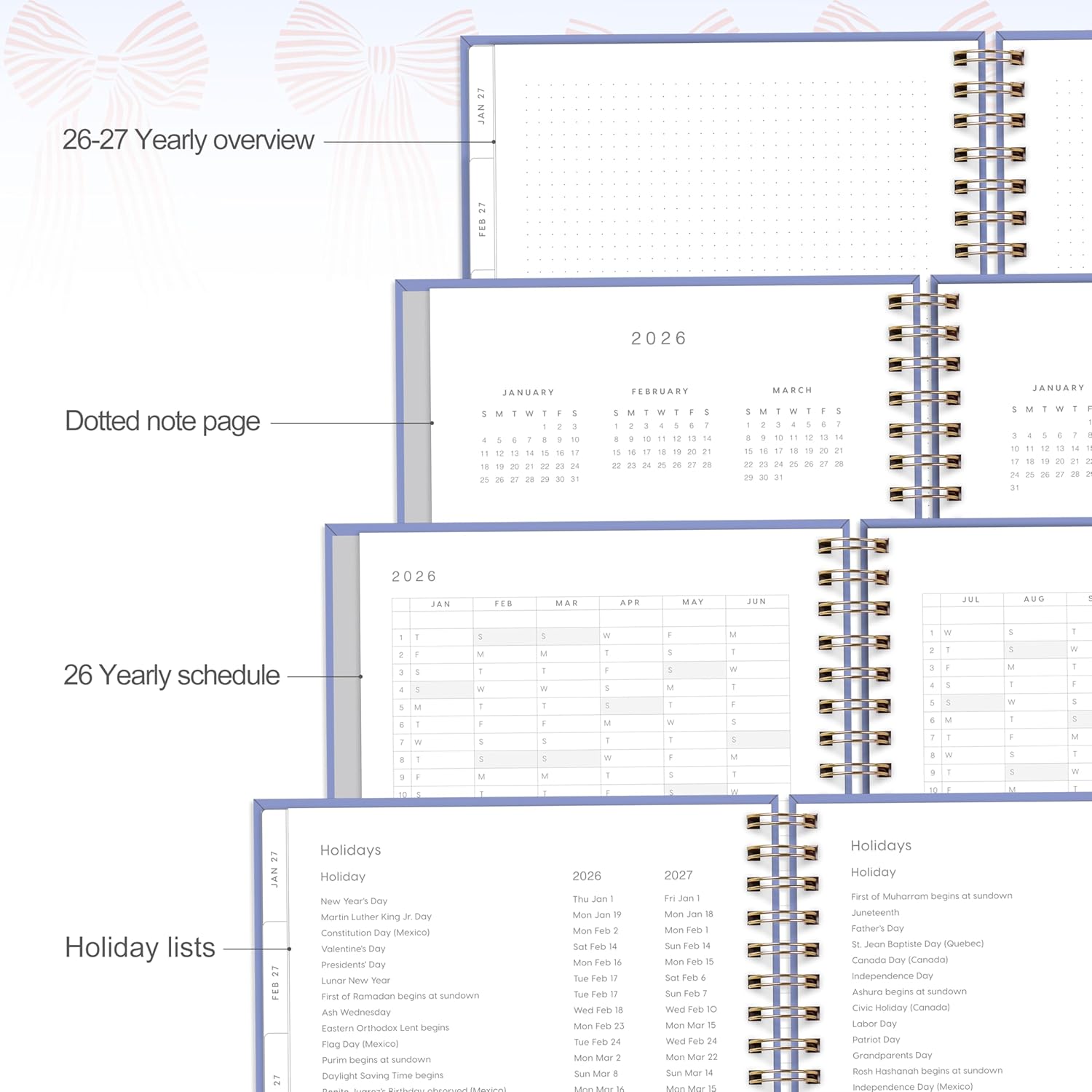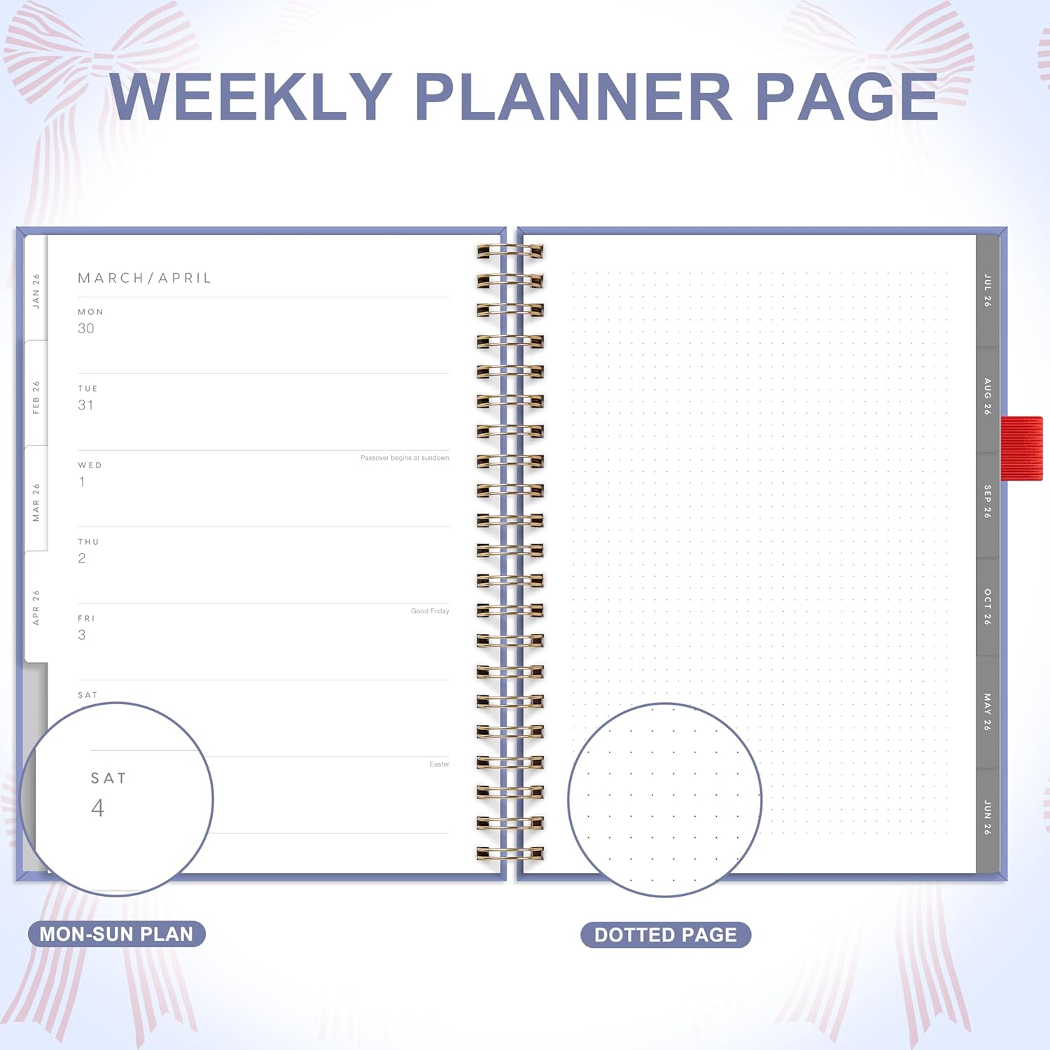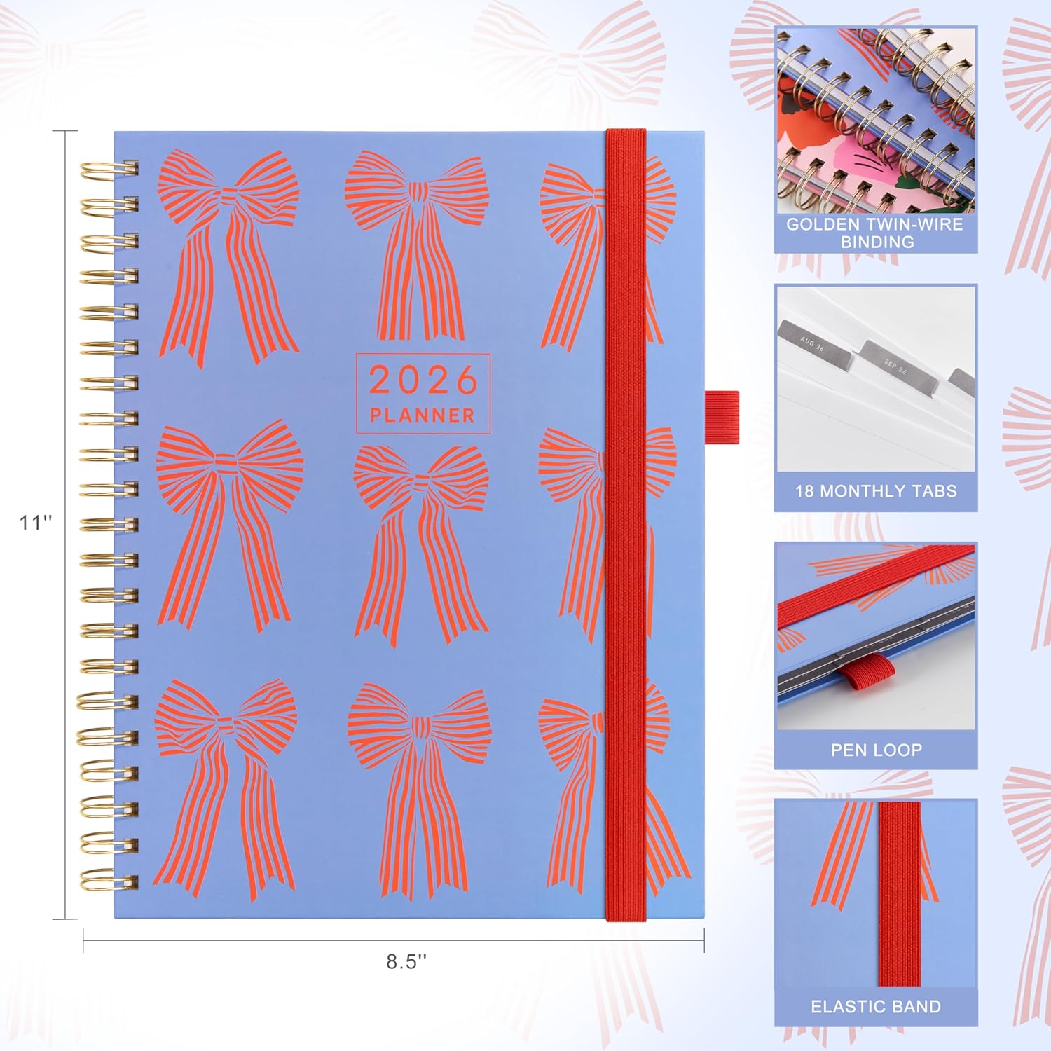 And Per Se 2026 Planner with Pattern, A4 Size-Daily, Weekly & 18-Monthly Leather Hardcover Planner, Daily Schedule, Monthly Tabs, 100 GSM Thick Paper(Bowknot Pattern)