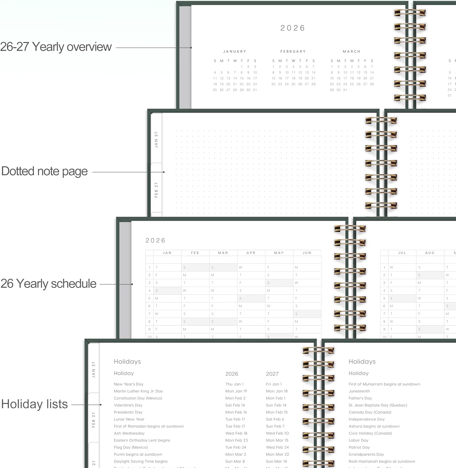 - Binding : Spiral-bound