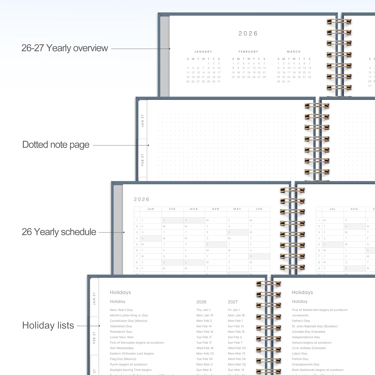 - 18-MONTH MONTHLY PLANNER: This 18-month monthly calendar planner (8.5" X 11"), covering from January 2026 to June 2027, has monthly & weekly planning pages for long-term planning.