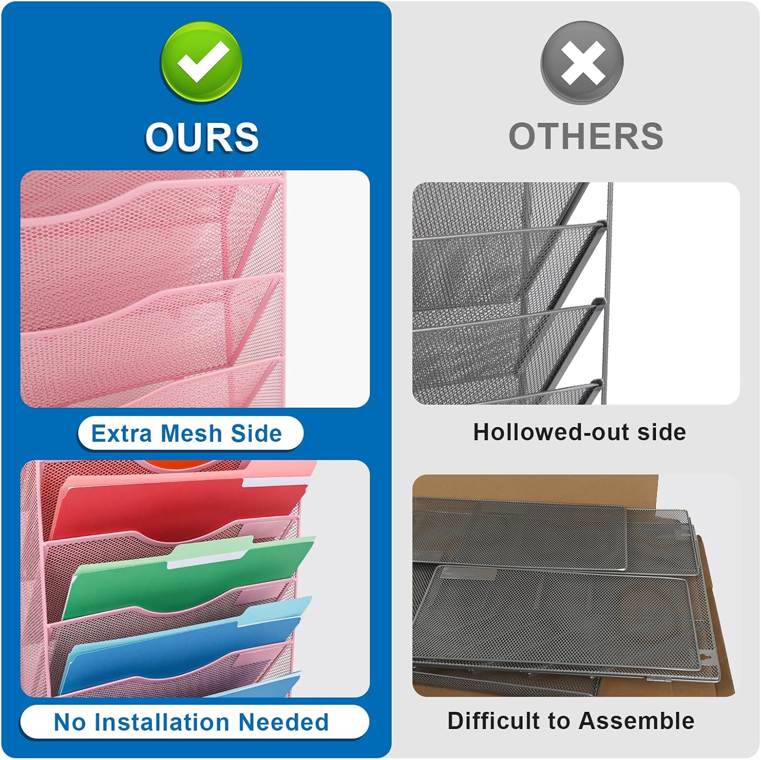 - Stable Structure: Elegant mesh metal construction with powder coat finish file pocket that take full advantage of your vertical space and keep your desk clean