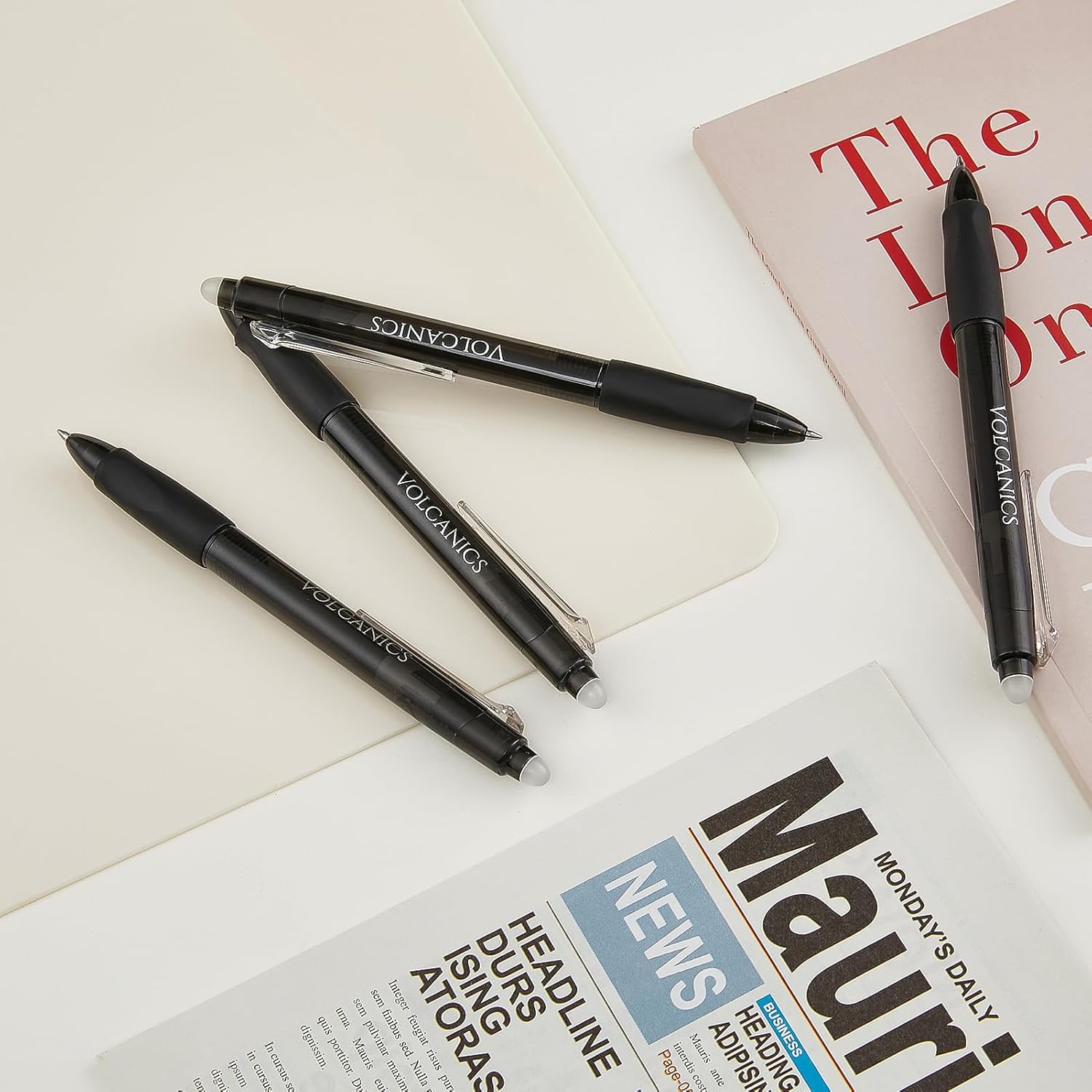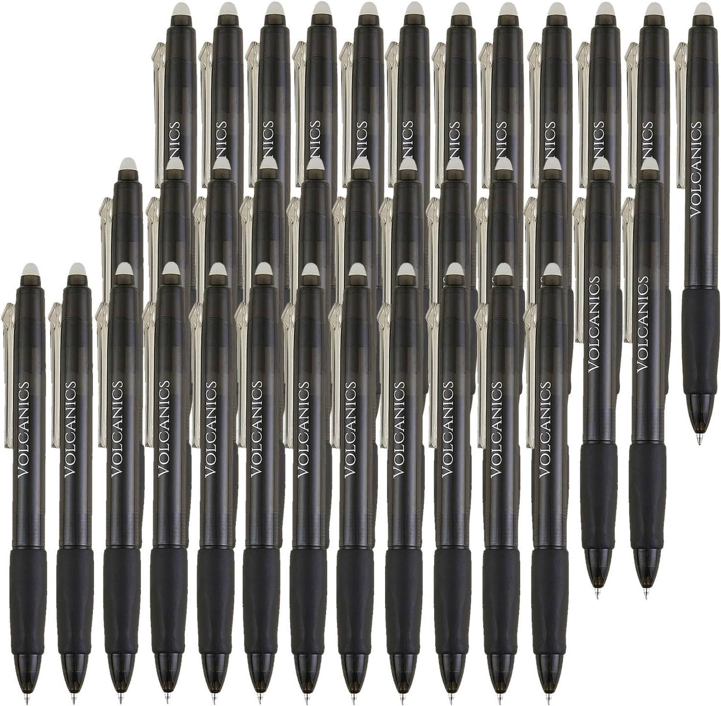 Volcanics Retractable Clicker Erasable Gel Pens - 0.7mm Ball Point, Heat Erase with Built-in Eraser, 36 Pack Black