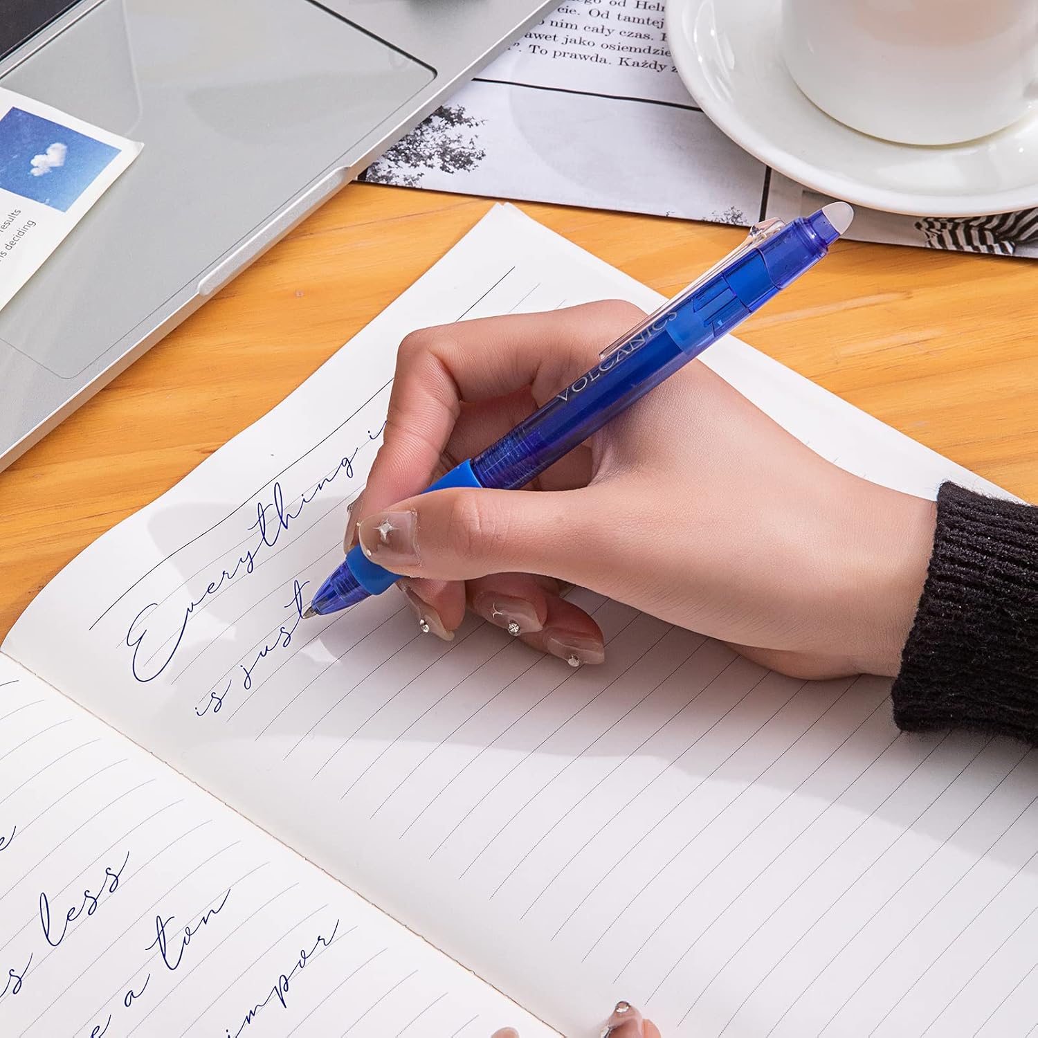 Volcanics Retractable Clicker Erasable Gel Pens - 0.7mm Ball Point, Heat Erase with Built-in Eraser, 36 Pack Blue