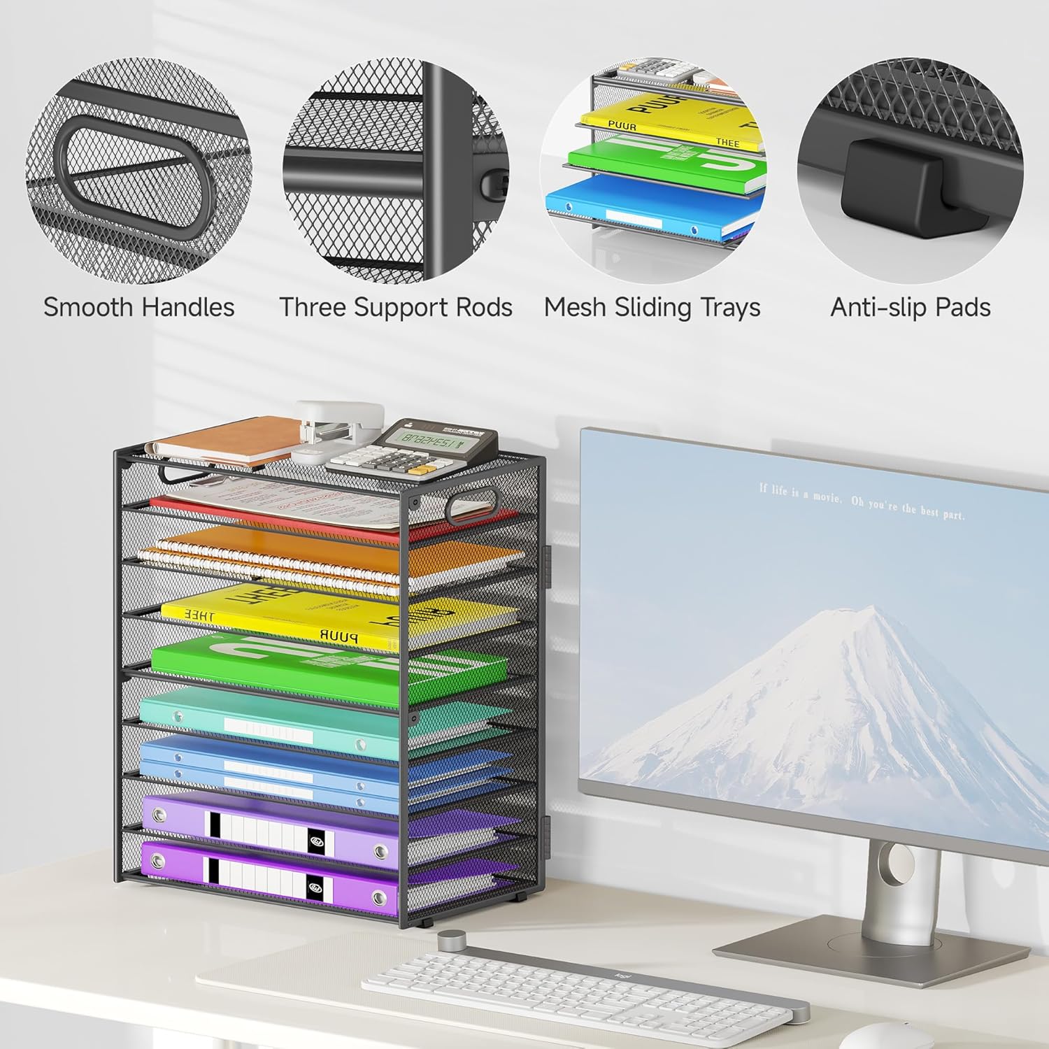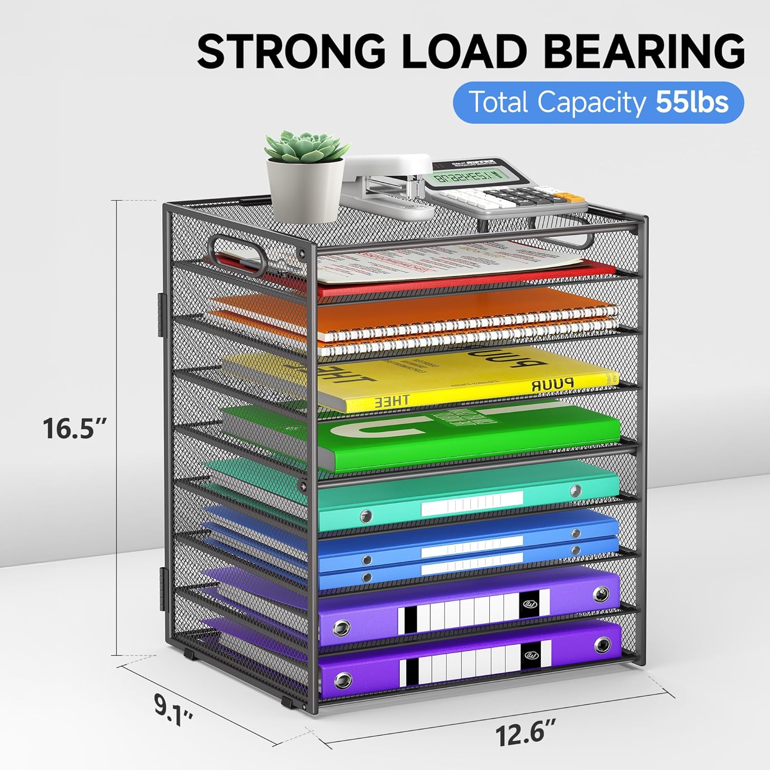 - 【EXTRA-LARGE STORAGE CAPACITY】Our 9-tier paper organizer offers more storage space than low-capacity file organizers, allowing you to sort and store more papers, letters, documents, folders, books, magazines, staplers, calculators, and sticky notes. Keep your workspace tidy and organized!
