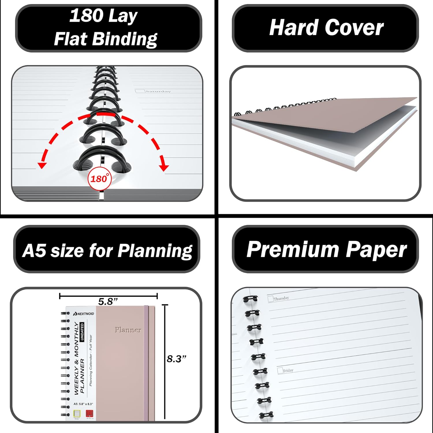 - All-in-One Planner Notebook - Designed for real life with both monthly and weekly planner views in one compact A5 planner. Perfect for organizing appointments, tasks, and goal setting in one place.