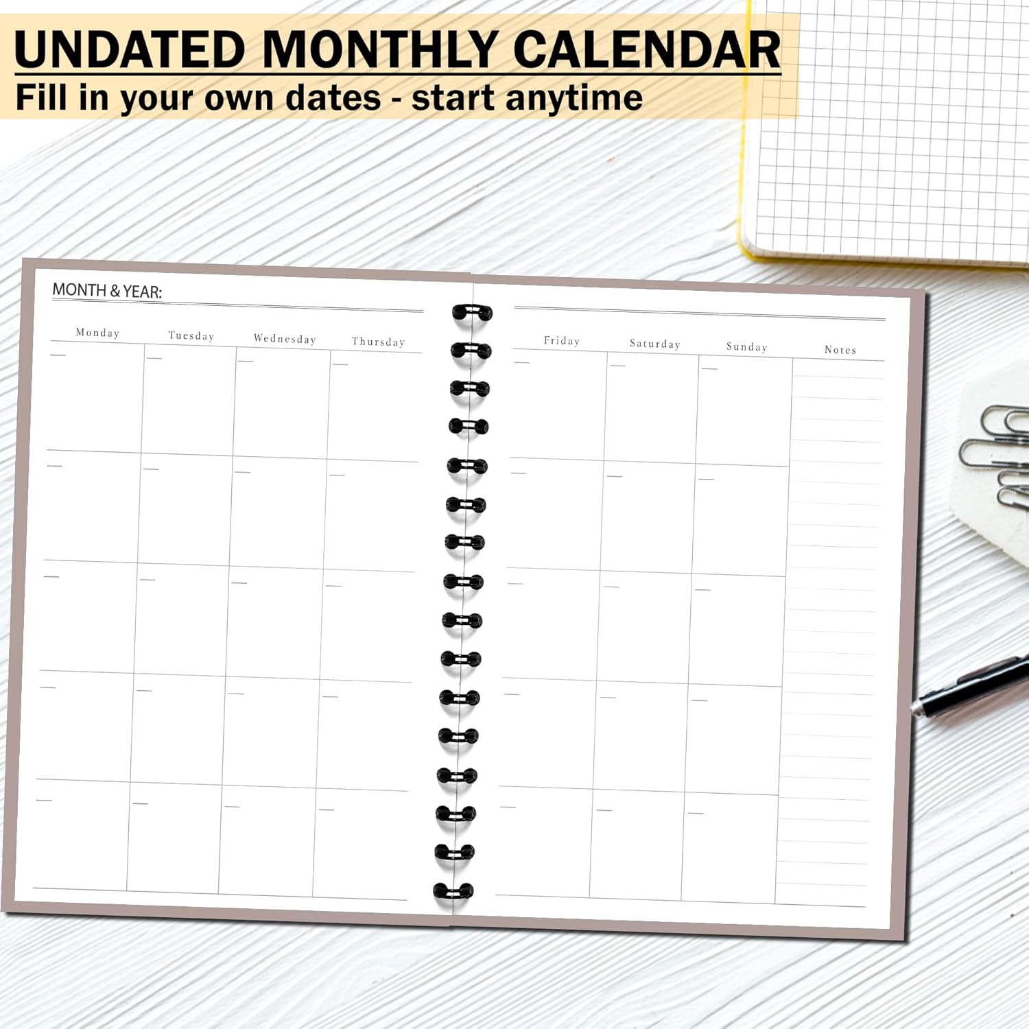 Undated Monthly and Weekly Planner - 12 Month Calendar Planner Notebook with Week Days - Hardcover Undated Planners Blank Agenda Book - A5 Pink