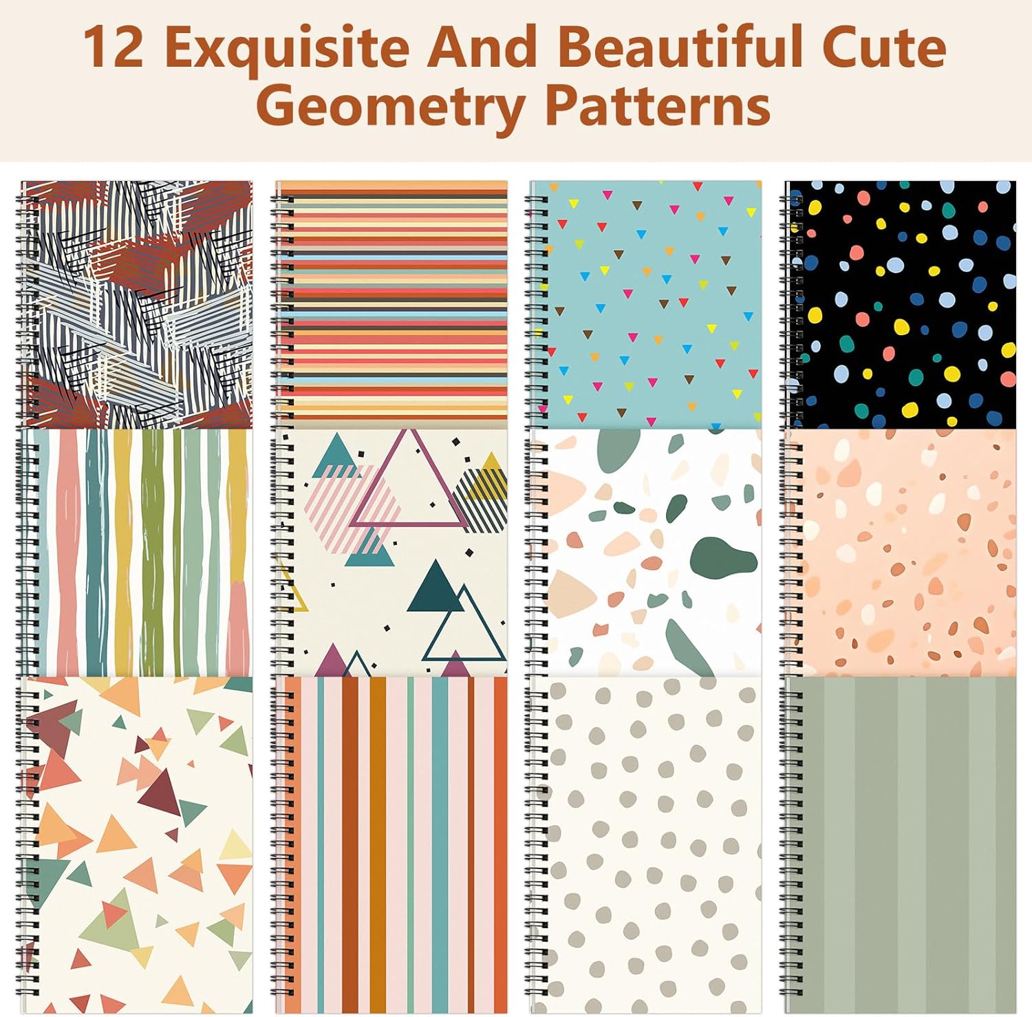 Fuutreo 12 Pcs Spiral Notebook for Work A5 8.3 x 5.7 Inch College Ruled Spiral Journal Notebook Kraft Cover Ruled Paper, 12 Color, 60 Sheets, 120 Pages for Office School(Retro Geometry)