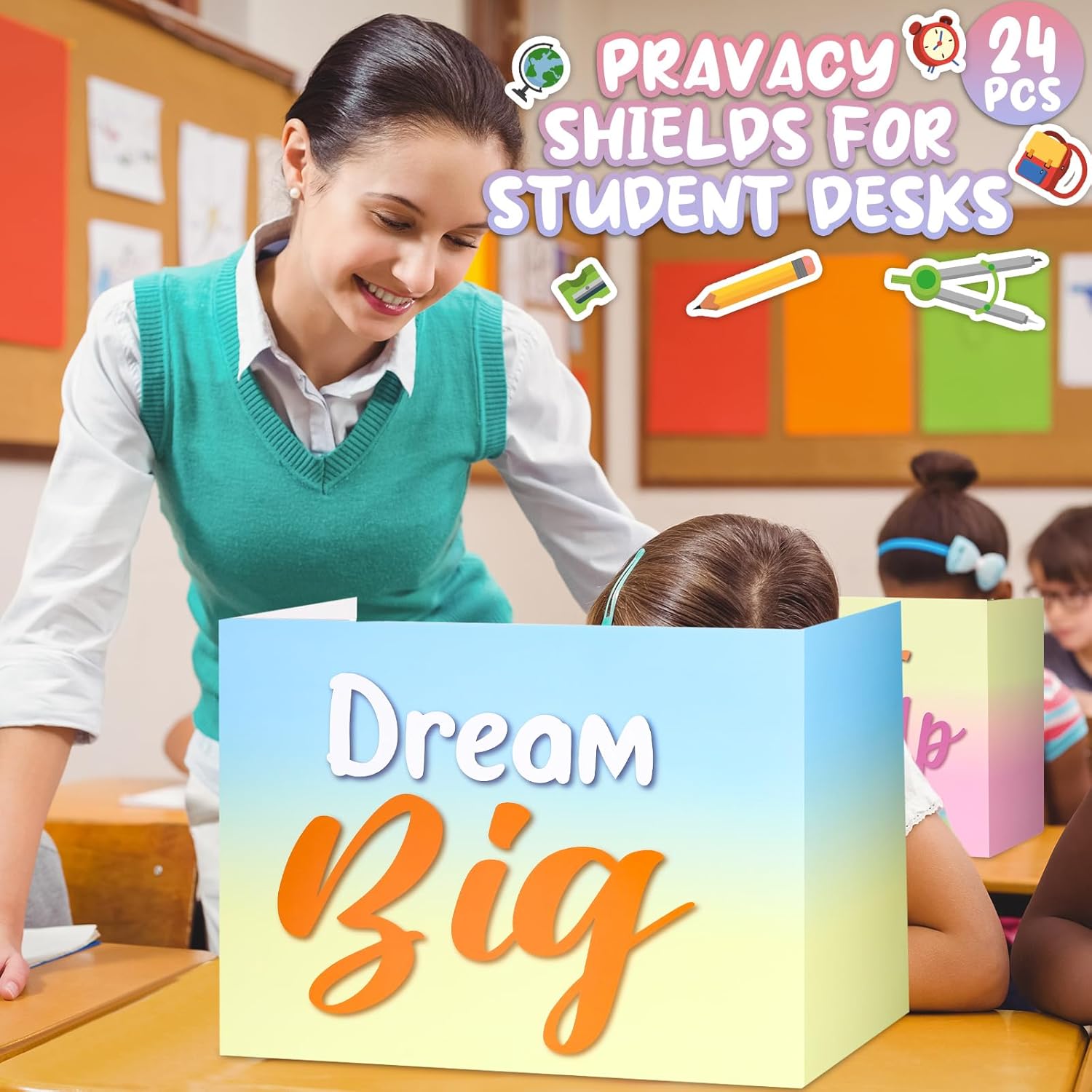 Honoson 24 Pcs Bulk Inspirational Privacy Folders for Students Cardboard Test Privacy Boards Motivational Words Desk Dividers Shield for Classroom School Study Supplies, 6 Styles (Macaron)
