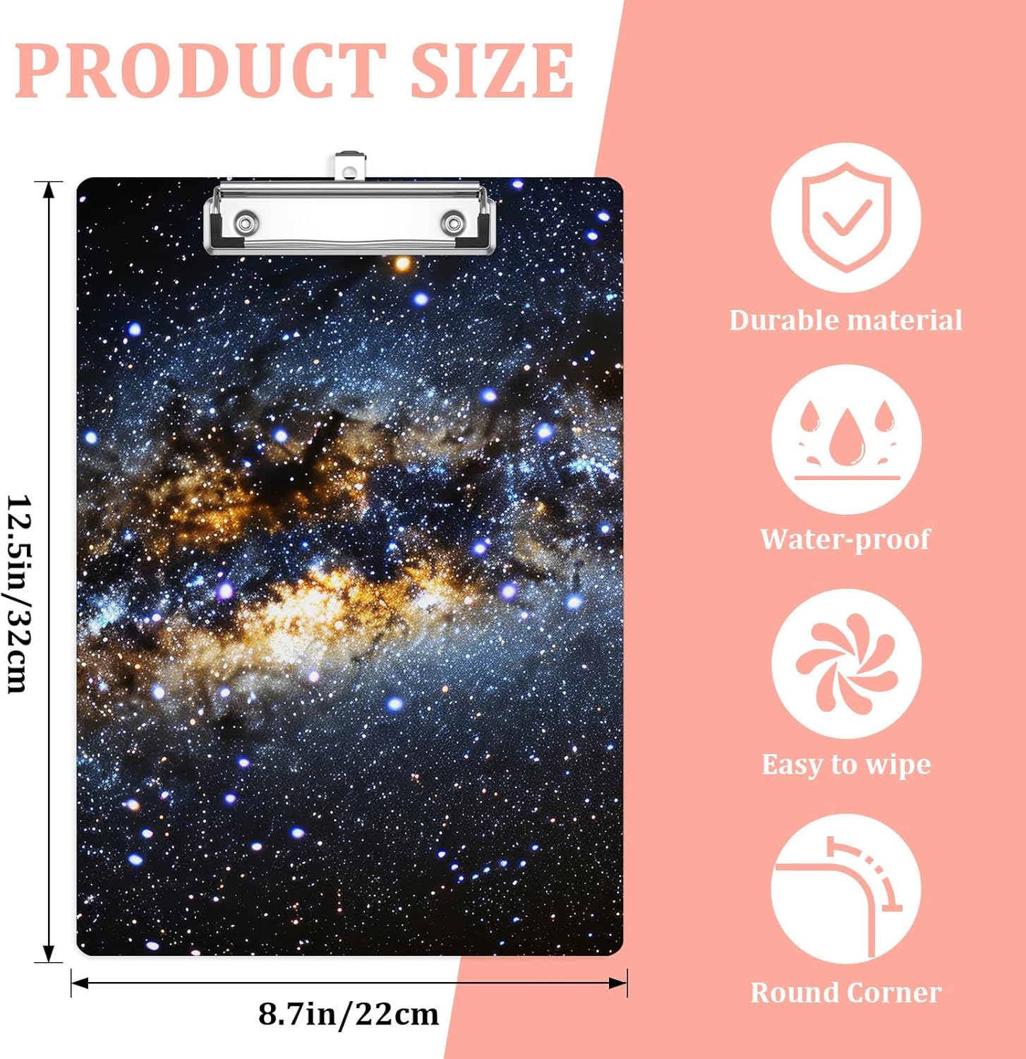 Galaxy Space Plastic Clipboards,Cute Fashion Clipboard Decorative 8.5" x 12.5"Standard A4 Size Clipboards,Acrylic Clipboard for Teacher,Social Worker,Students,Nurse,Office Supplies