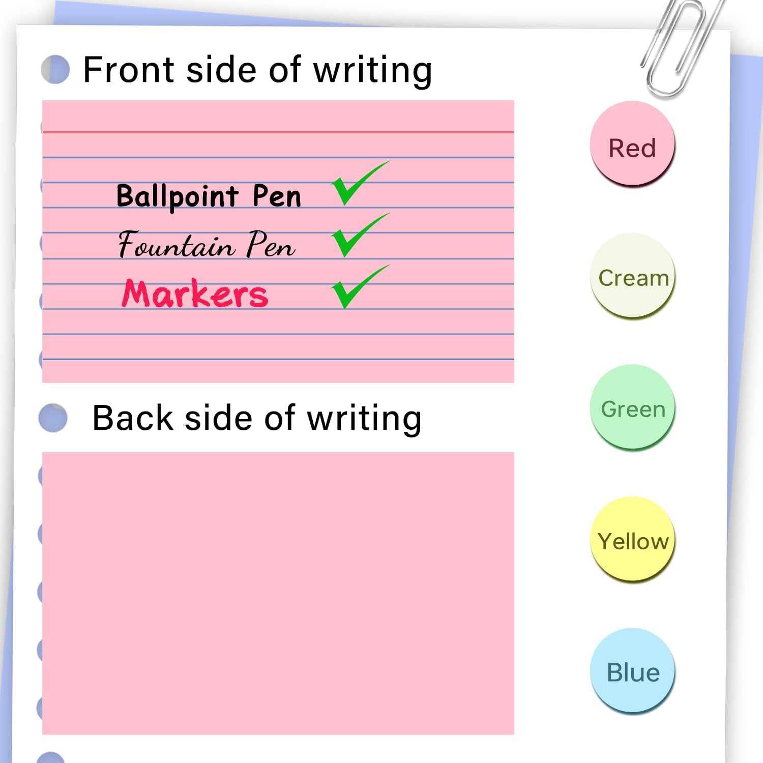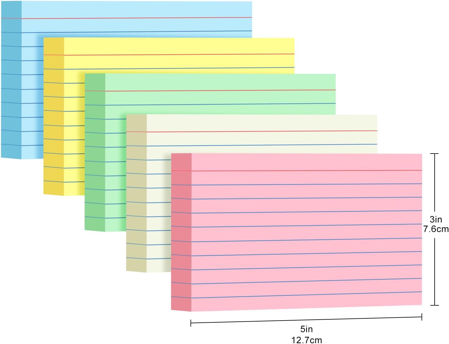 - 【Index Card Size and Quantity】 3 x 5 inches/7.62cm x 12.7cm. Cream / Pink / Green / Yellow/ Blue. 5 colors, 250 sheets in total, 50 sheets of each color (individually wrapped)