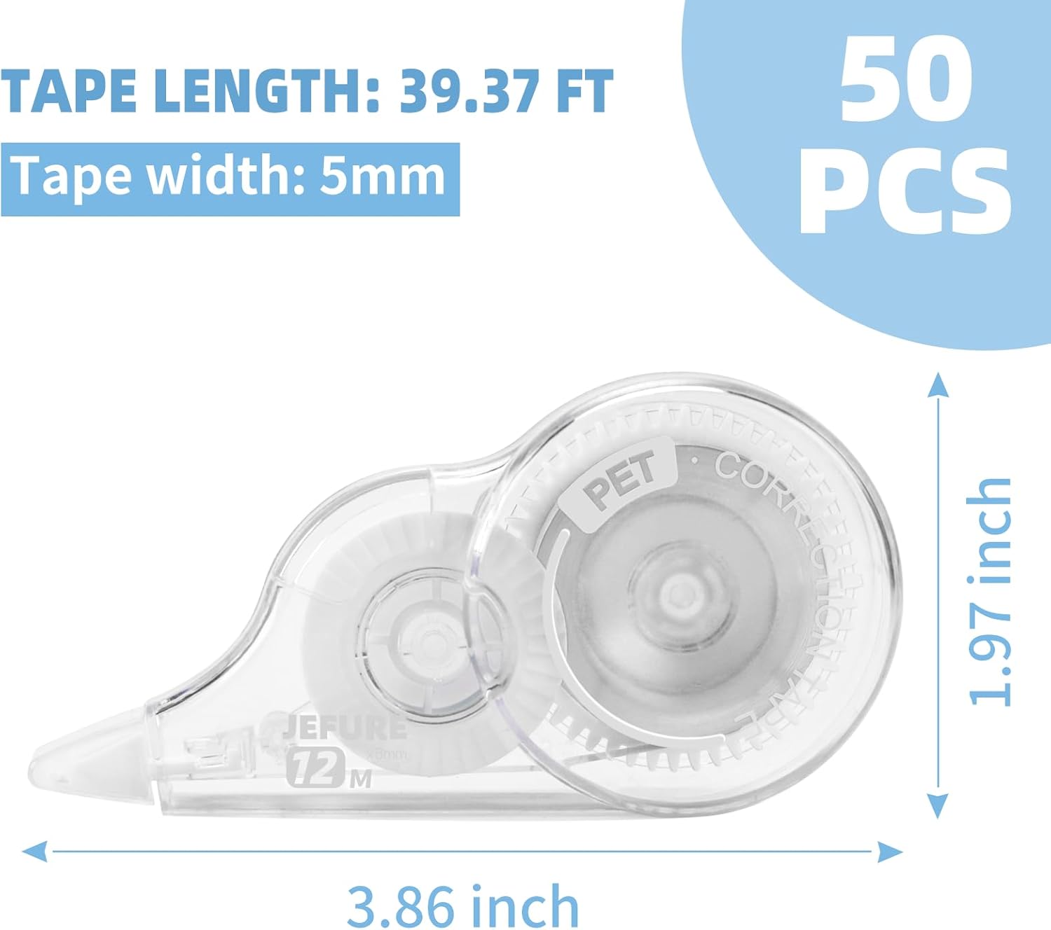 50 Pcs Correction Tape, 39.4 Ft White Wrong Out Tear-Resistant Bulk, Instant Corrections Easy To Use Applicator for School, Office, Note Taking, Journal (Tape Width 0.2 in, Clear)