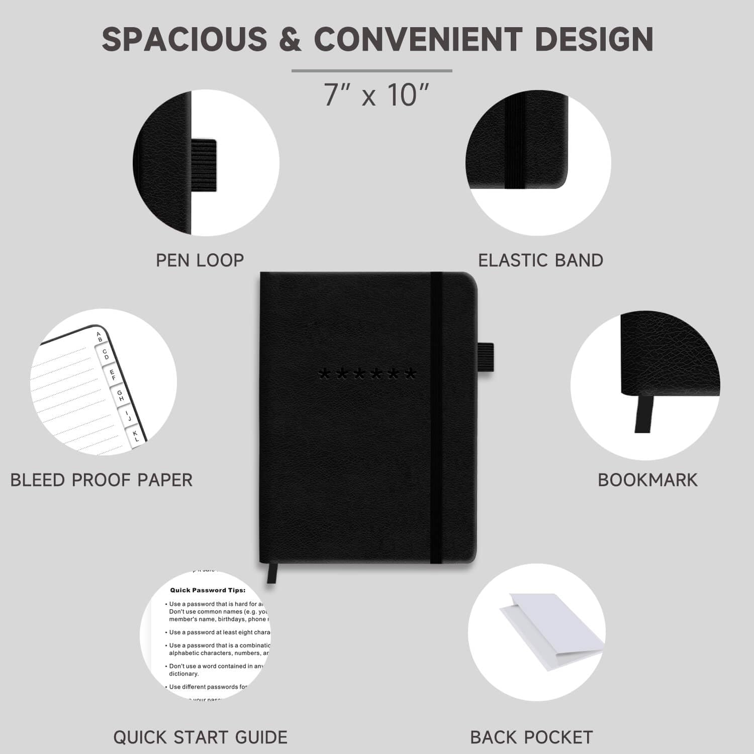 - Premium Quality - TUPARU password notebook's hardcover is made of high-quality leatherette material which looks really beautiful on the outside. And this internet address book comes with an accordion back pocket, one ribbon bookmark, a pen holder, and an elastic band.
