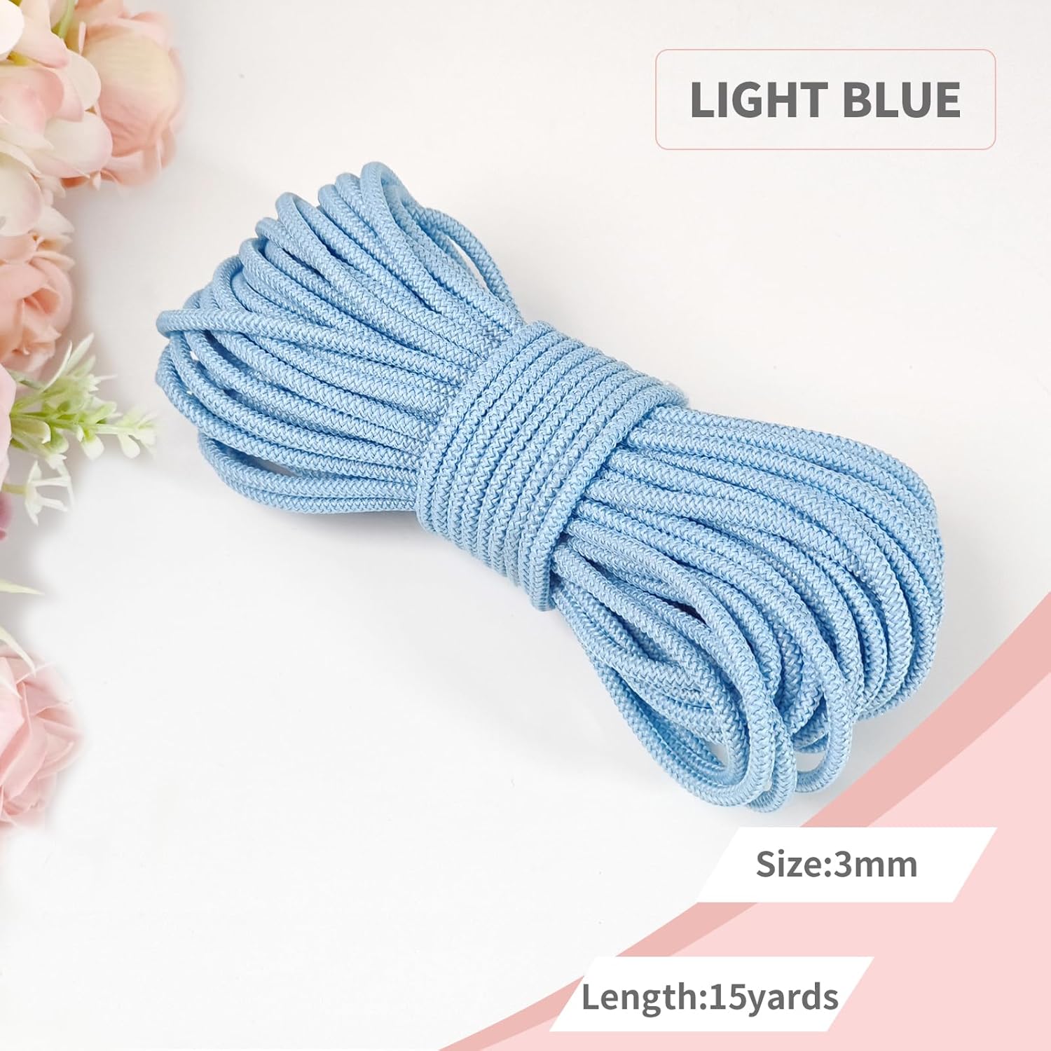 1/8 inch Non-Slip Elastic Band -3mm 15 Yards Soft Elastic Cord Stretch String Braided Thread for Sports Gear, DIY Crafts, Hair Bands, Shoelaces,Apparel Making & Camping Tie Down (Light Blue)