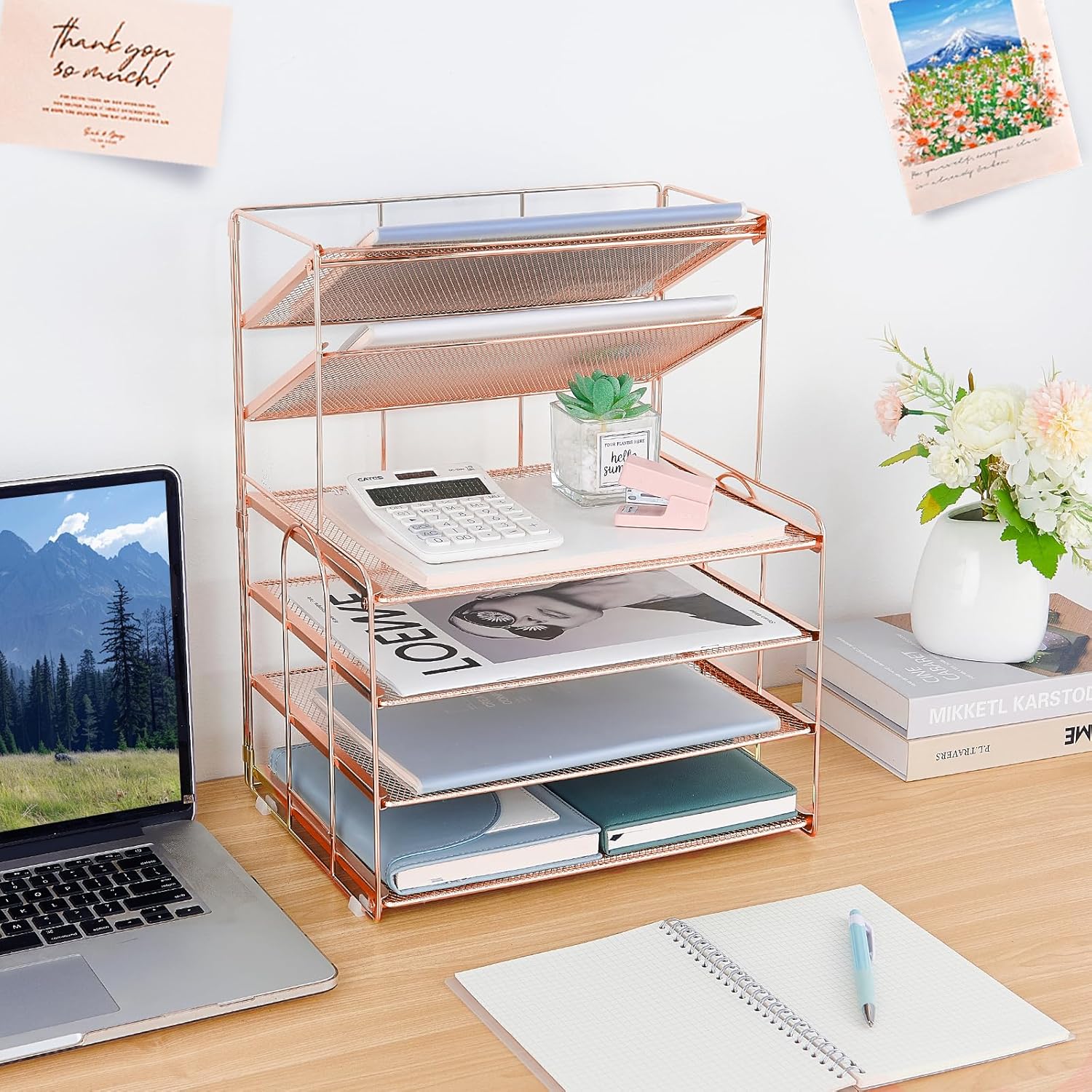 Desk Organizers and Accessories, 6-Tier Letter Tray Paper Organizer, Desktop File Organizer, Office Desk Accessories for Office Supplies (Rose Gold)