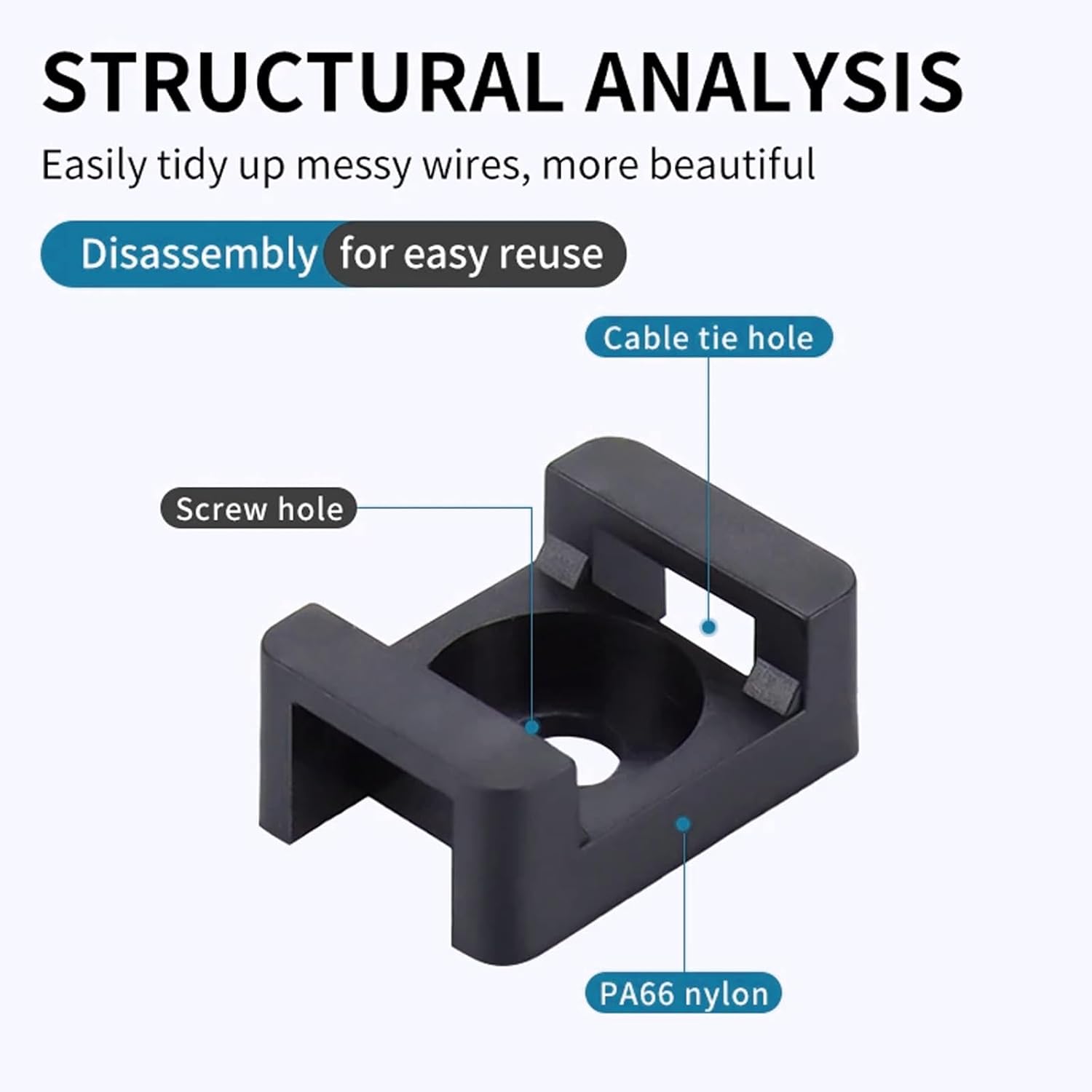 - Easy to Use: Zip tie sticky mounting pads are easy to use and can be installed without other auxiliary tools. When installing, you need to ensure that the installation exterior is dry and dust-free. The 3M cable tie mounts aren't suitable for repeated use
