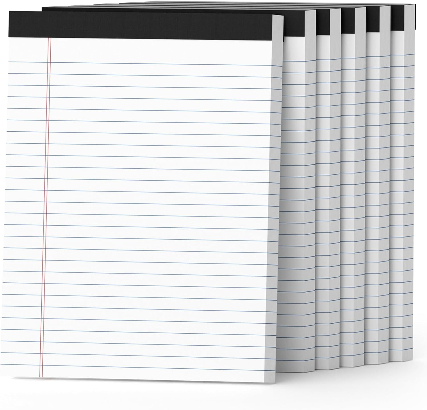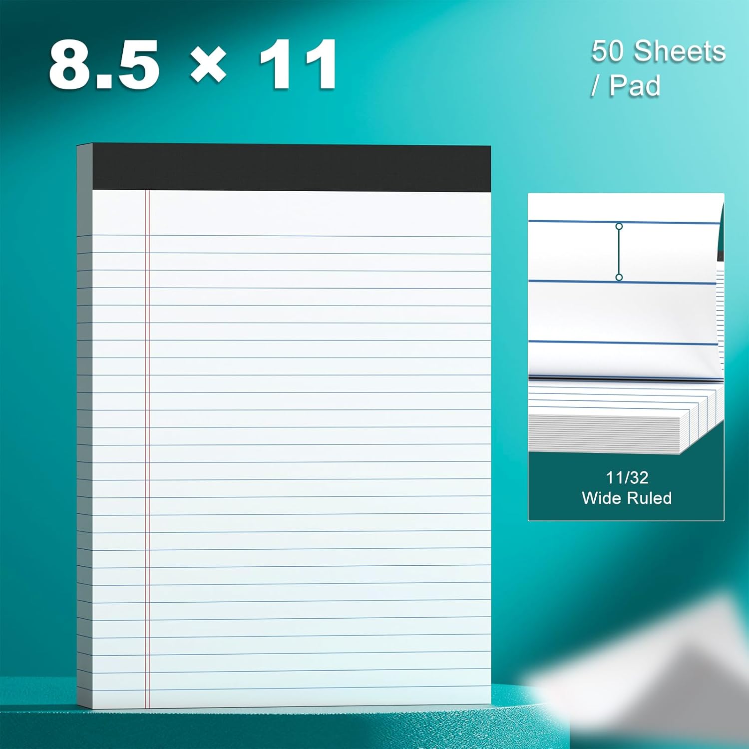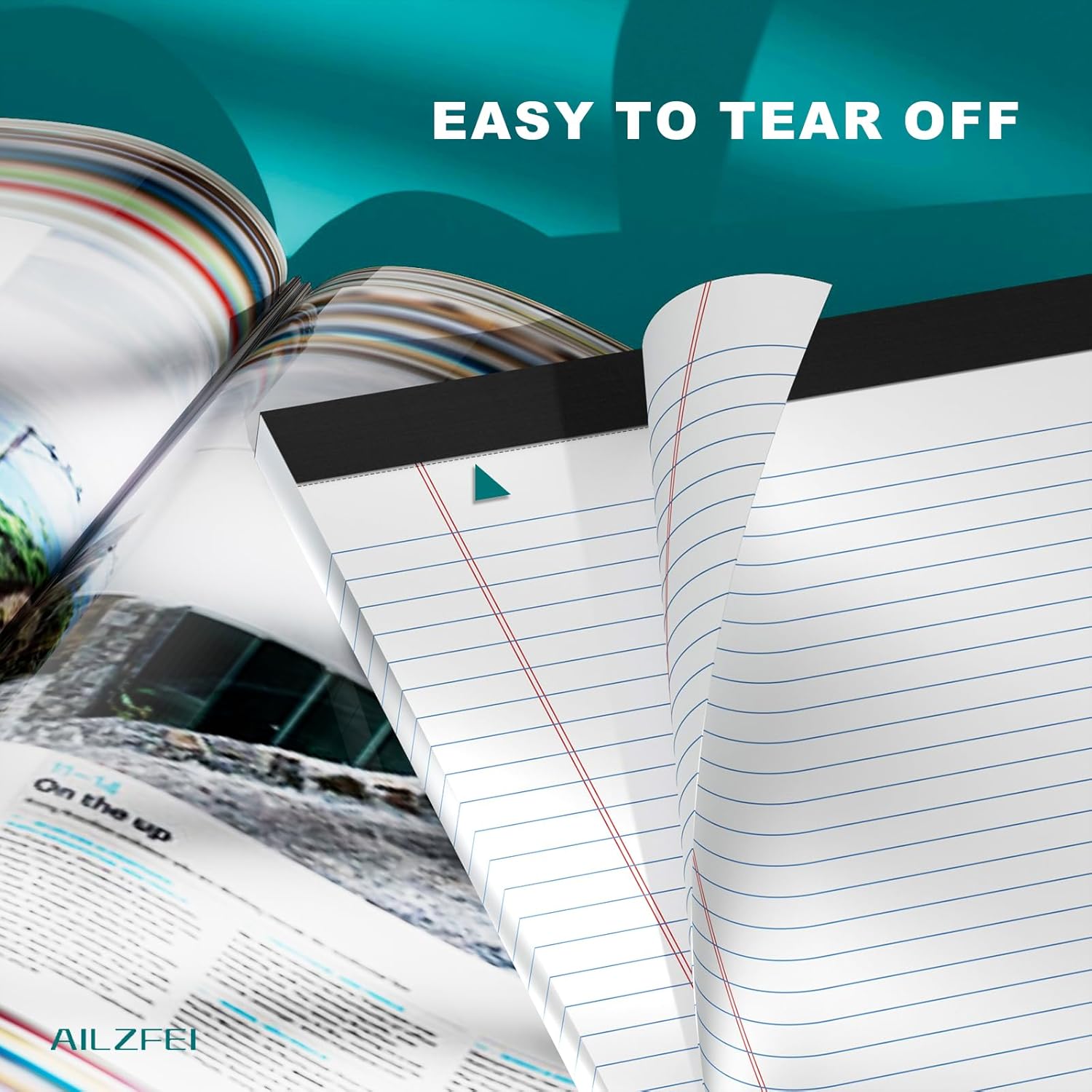 AILZFEI 300 Sheets White Legal Pads 8.5 x 11 Wide Ruled 6 Pack Notebook Paper Note Pad 50 Sheets per Notepad Perforated Writing Pad Study Back 8x11 Pads of Paper