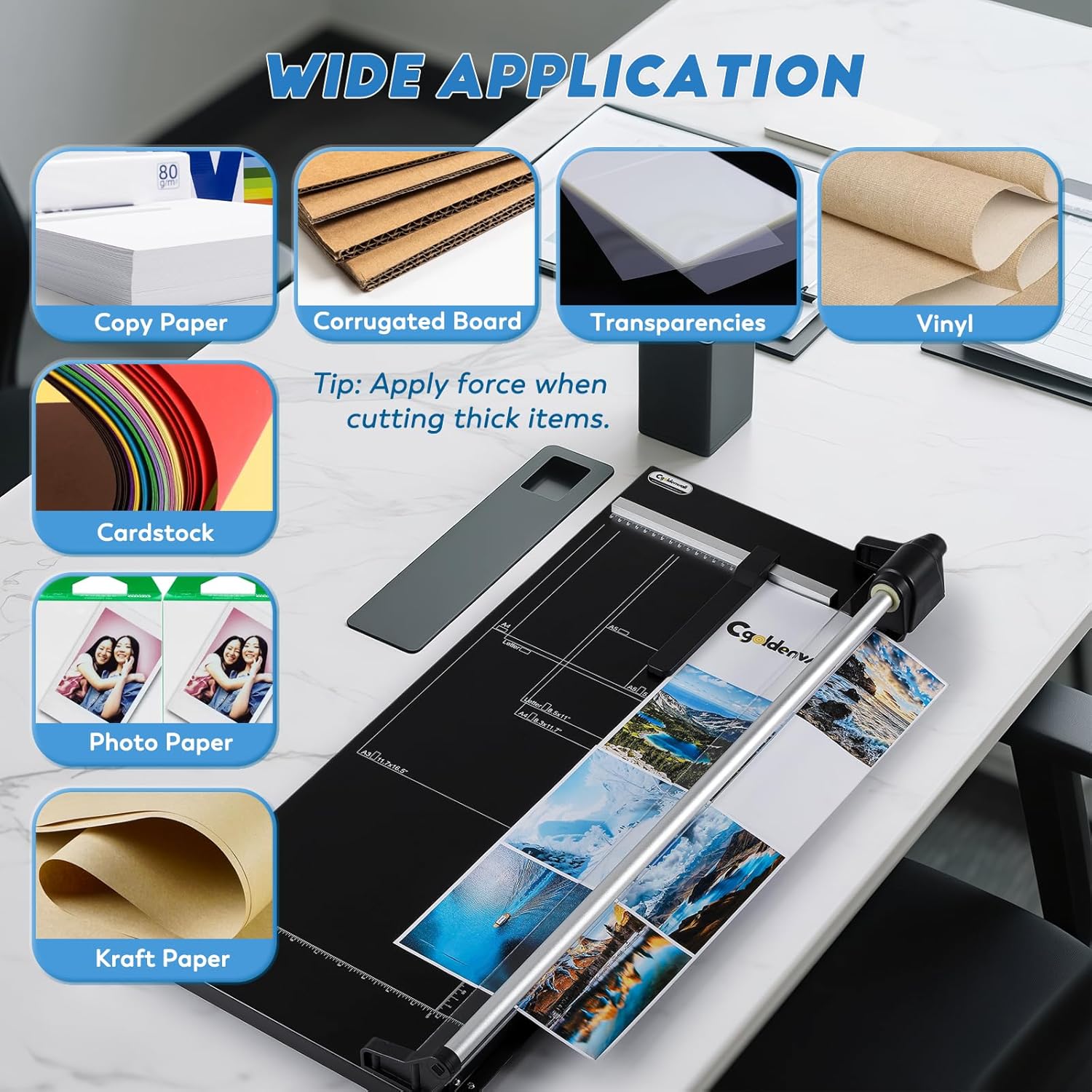 CGOLDENWALL A2 Rotary Paper Trimmer, 12 Sheets, w/Extra Blade & Gloves, for Cardstock Photo, Heavy Duty Paper Cutter for Offices Schools Crafts (24.8 Inch Cut Length)