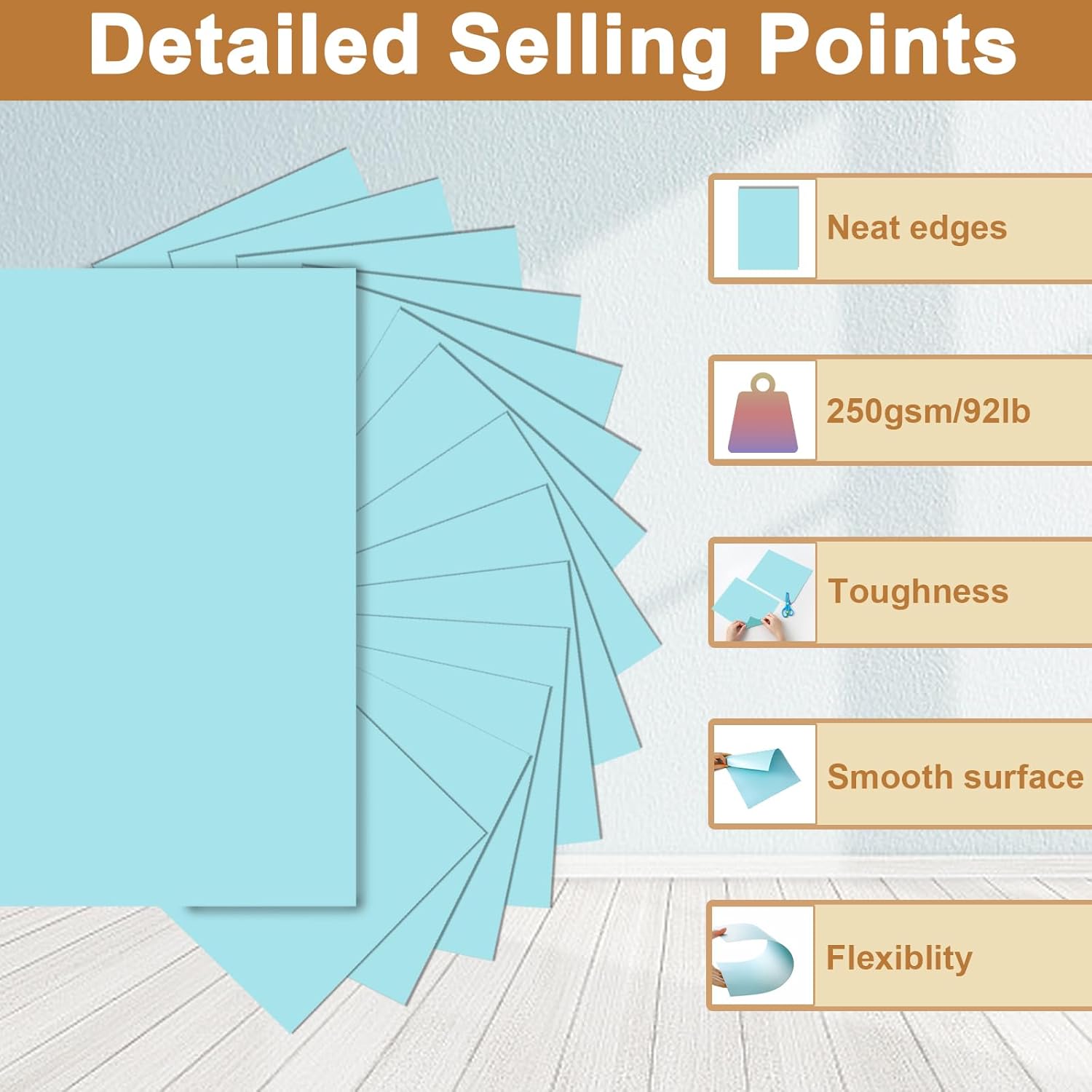 - ▶COMPATIBILITY: Sturdy and versatile, our light blue card stock printer paper is compatible with most types of inkjet, laser printers, die cut machine and cricut cutting machine. Consult your printer manual to ensure it can print on 92lb Cover / 250gsm before ordering