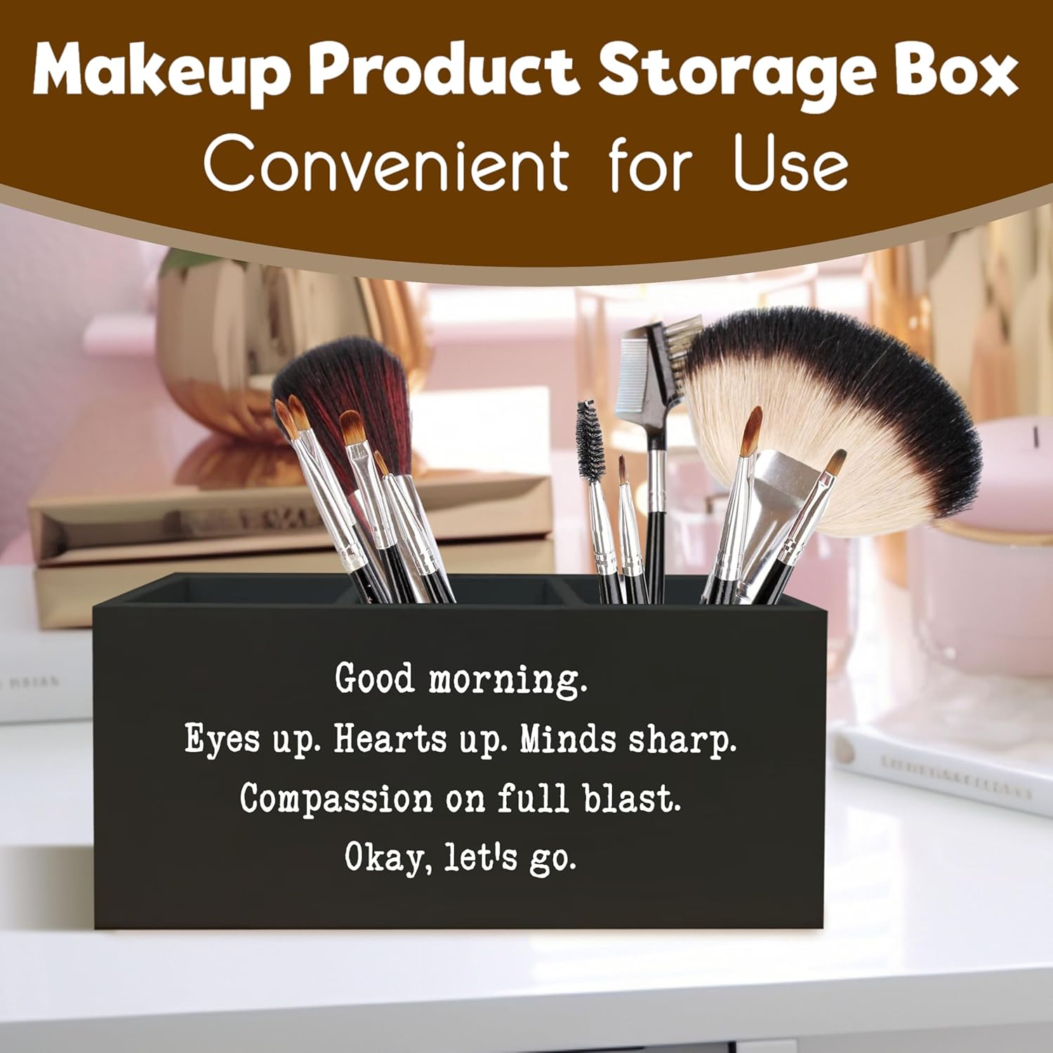 - Three compartments: The design features three separate sections for categorizing and storing items such as makeup brushes, pens, office tools or accessories. It is also suitable for use in the living room, where you can place the remote control and small household items in one place.