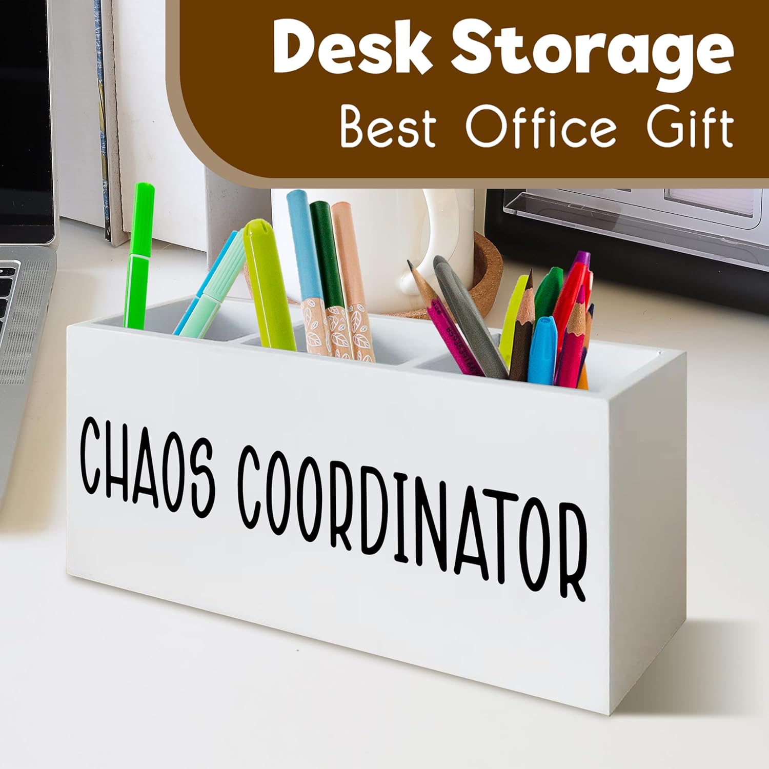Chaos Coordinator Gifts Pen Holder for Desk, Thank You Appreciation Gift for Coworkers Boss Leader Manager Wooden Pen Pencil Holder Organizer for Office Desk Accessories