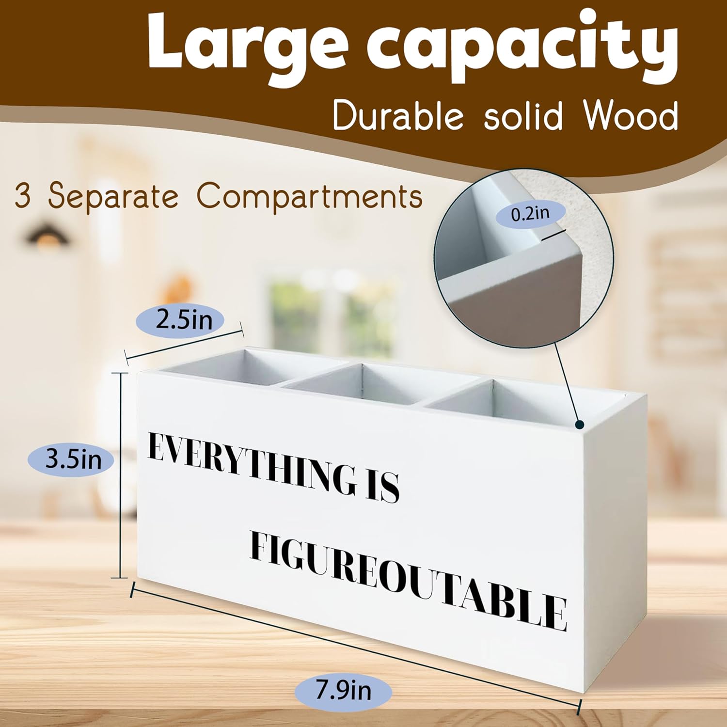 Everything is Figureoutable Inspirational Pen Holder for Desk, Motivational Gifts for Coworkers Women Men, Positive Quote Wooden Pen Pencil Holder Organizer for Office Desk Accessories
