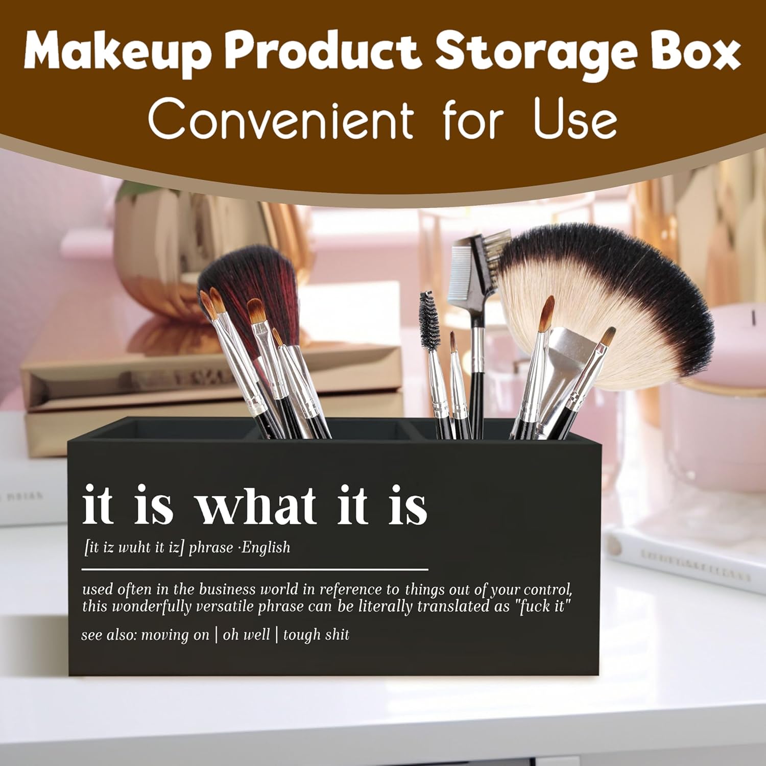 Funny Office Black Desk Pen Holder, It Is What It Is Funny Gifts for Coworkers Funny Signs Wooden Pencil Holder Decor for Office Bathroom Shelves Boos Desk Accessories