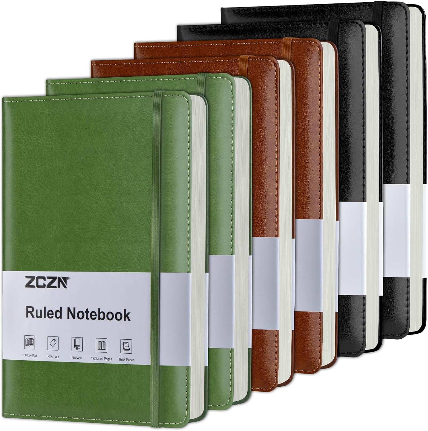 ZCZN 6 Pack Lined Journal Notebooks, 192 Pages A5 Hardcover Leather Journals for Work,Writing,School & Travel, College Ruled Journaling Notebooks for Notes Taking,Diary Journal (Black+Brown+Green)*2