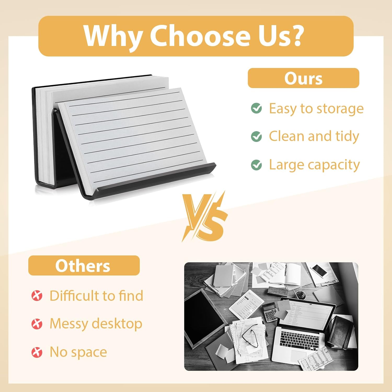 - Product Size: Our small acrylic card holder measures: 5x3x3 inches. The postcard display stand is large enough to provide ample space for your card collection and can hold 100 index cards. Helps to help you create an organized desktop or countertop. With a stacking design, it is convenient to package multiple cards.