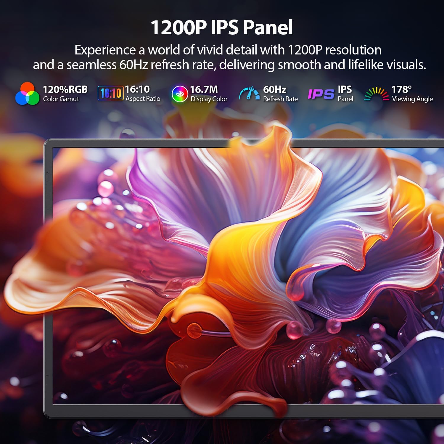 - 【120% sRGB Color Accuracy】Professional-grade color reproduction with 120% sRGB coverage showcases 16.7 million vibrant hues with precision. The optimal 16:10 aspect ratio provides 11% more vertical workspace than standard 16:9 displays, while the 1000:1 contrast ratio and 60Hz refresh rate deliver crisp, fluid visuals for design work and entertainment.