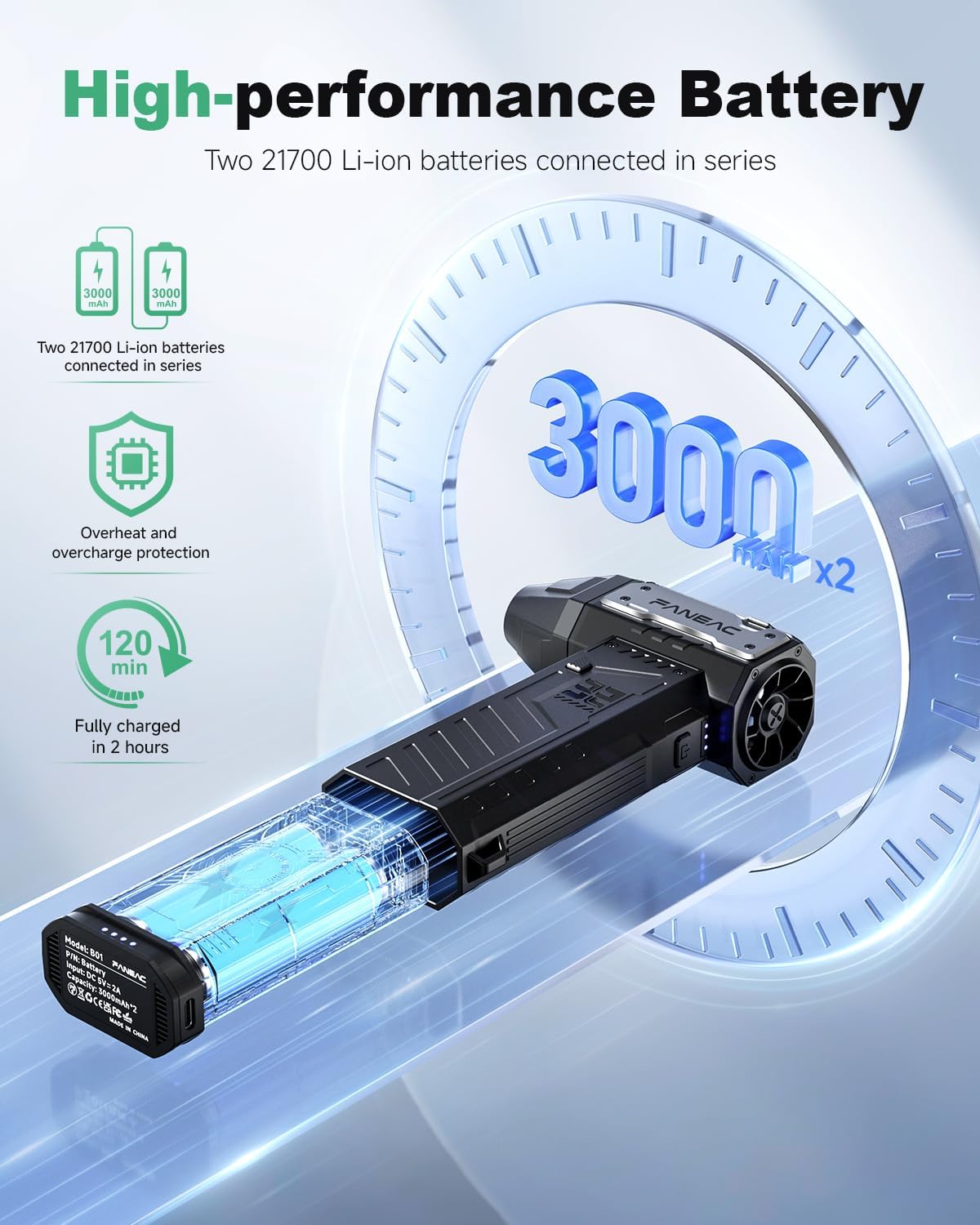 Electric Compressed Air Duster 150mph Wind Speed 2 Battery-Pack 3-Gear BLDC Ultra-Powerful Brushless Motor, for Keyboard, Computer, House, Indoor and Outdoor