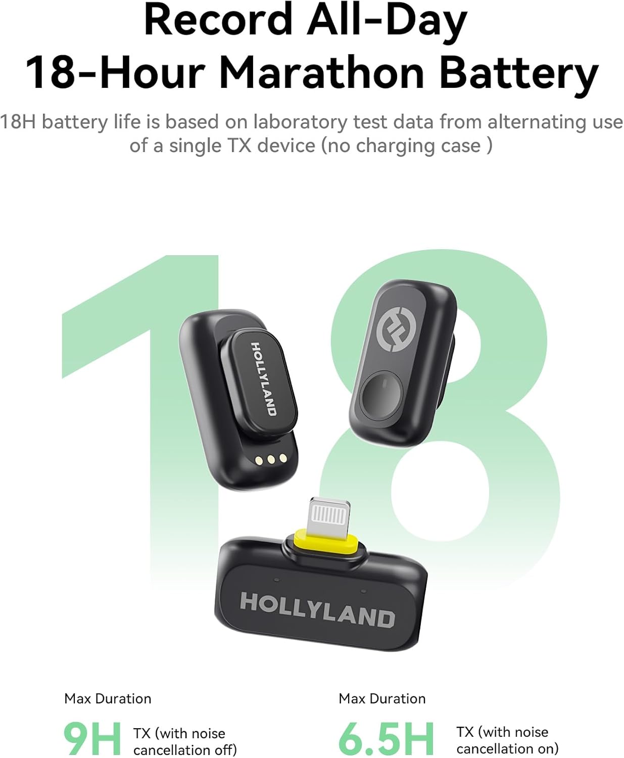 Hollyland Lark A1 Wireless Mini Microphone for iPhone 14/13/12 (2TX + Lightning RX) 48kHz/24-bit, 3-Level Intelligent Noise Cancel, Magnetic Microphone for YouTube, Podcast, Vlogging (Black)