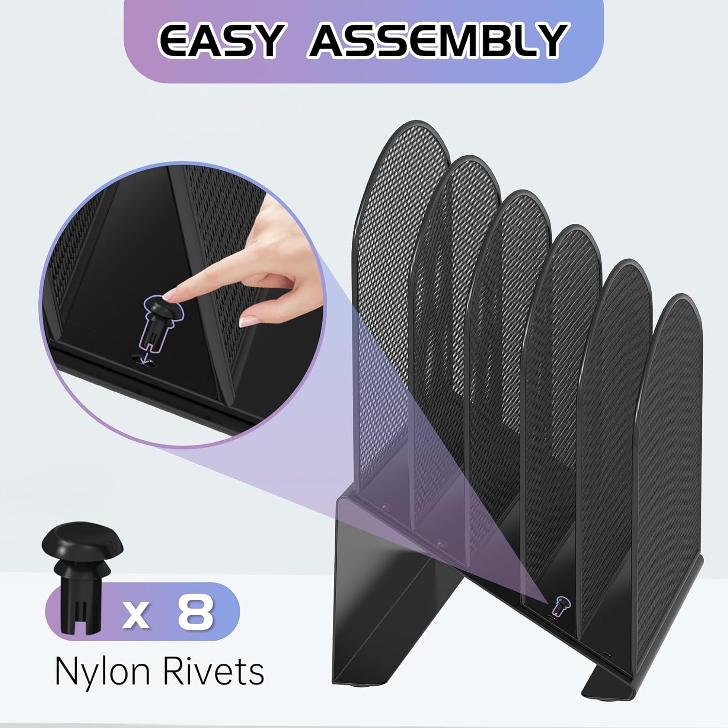 - Easy to assemble: Our vertical file holder is equipped with 8 nylon rivets and can be successfully assembled within minutes. Comes with illustrated instructions, no need to worry about assembly and use. giving you a better experience.