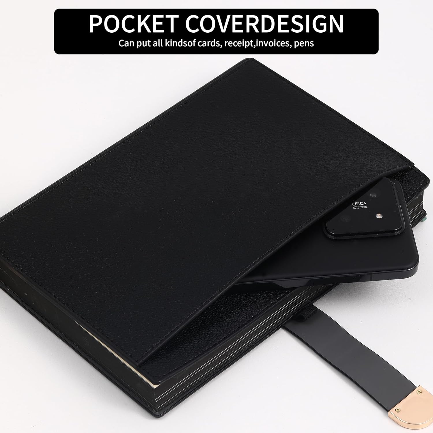 - Premium Vegan Leather Cover: The black journal notebook is crafted with a faux PU leather, featuring a unique textured hardcover and minimalist design that appeals to both men and women. The black page edge gives the exquisite journal for women and men a special look. The ribbon bookmark with gold charm help find your detail information quickly