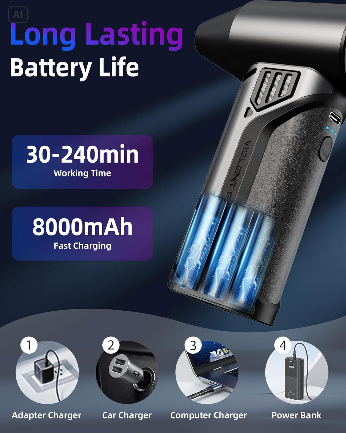 - [Premium Aluminum + ABS Construction]: Built to last, the air duster electric features scratch-resistant, sleek aluminum housing with industrial-grade ABS. Its modern aesthetic doubles as a stylish car accessory, blending durability with sophistication.