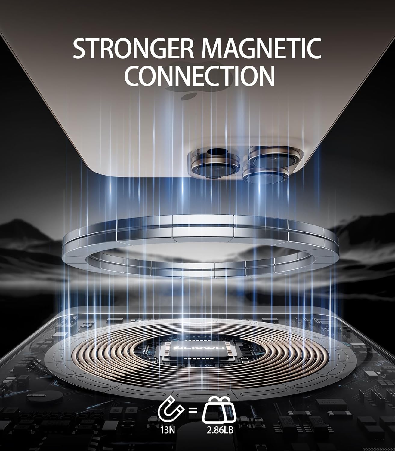 - Strong Magnetic Attachment - Forget messy cables! With an ultra-strong 14N magnetic pull, this slim for magsafe iphone wireless charger fast charging securely snaps onto your phone and stays firmly in place—even during movement or heavy use. Tested to withstand over 3000 shakes, the portable phone charger iphone ensures stable wireless charging anytime, anywhere