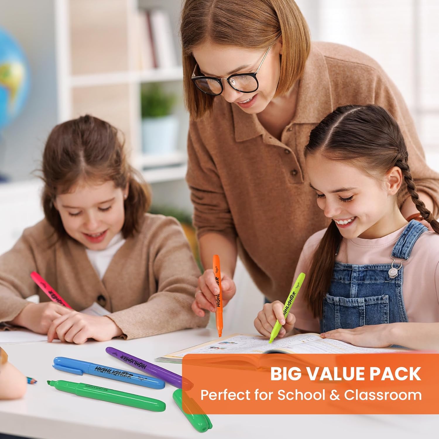 - Big Value Pack - Includes 216 vibrant highlighters in 6 assorted colors—pink, orange, yellow, green, blue, and purple. Easily color-code notes and materials for better organization, making it ideal for both study and work.